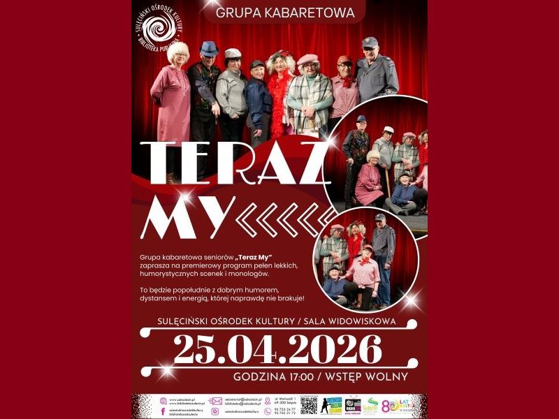 Zapraszamy serdecznie na premierę nowego programu pt; „Z domieszką mężczyzny” 25.04.2026 godzina 17:00 Wstęp wolny! Grupa Kabaretowa TERAZ MY od…