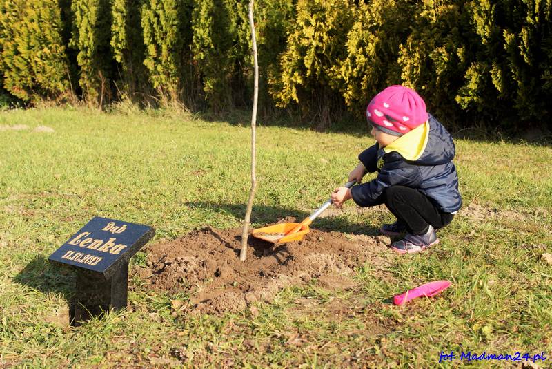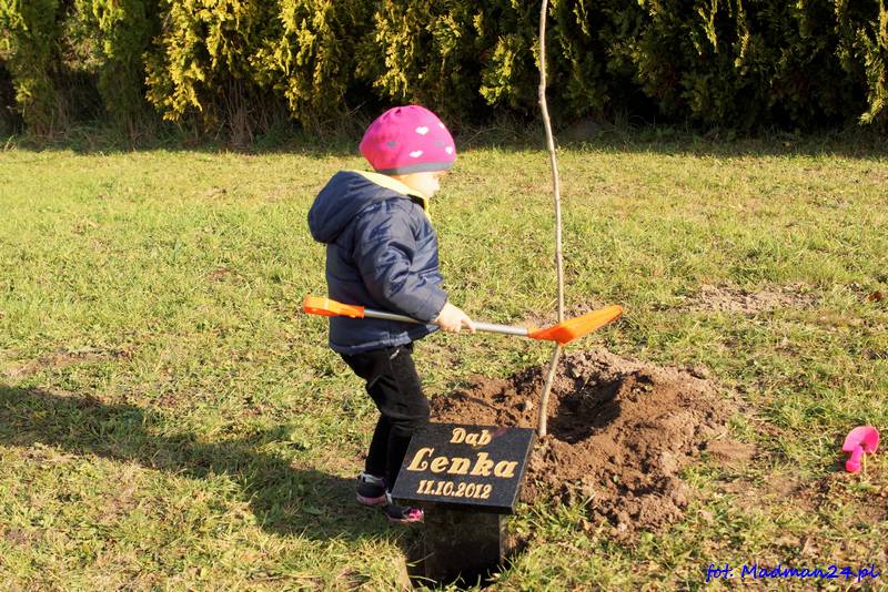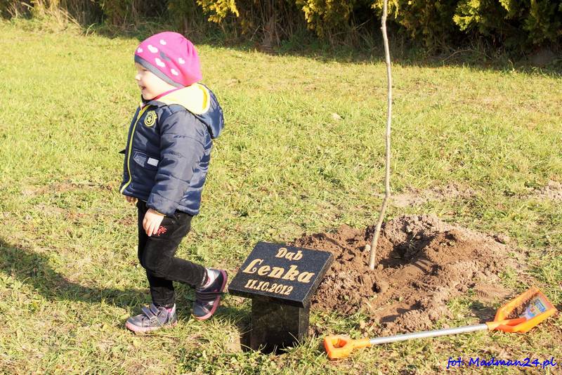 Wraz ze swoim drzewkiem będzie rosła 3-letnia Lenka. W dniu dzisiejszym osobiście posadziła dąb i zakopała kapsułę czasu. Obok dębu jest też pamiątkowa płyta z imieniem i datą urodzenia. Z przyczyn proceduralnych drzewo zostało posadzone na prywatnej posesji. W przyszłości planujemy sadzenie „imiennych drzew” na terenie Sulęcina. Oczywiście wszystko zależne jest od uzyskania odpowiednich pozwoleń. Rozmowy trwają. Lenka swoje drzewo już ma. Teraz kolej na następnych chętnych. Nasz portal pomaga w załatwieniu zarówno formalności jak również np. wykonania pamiątkowej tablicy. Nasz adres e-mail znajduje się w zakładce „kontakt” na dole strony. Można pisać też za pośrednictwem Facebooka https://www.facebook.com/sulecinmadman/