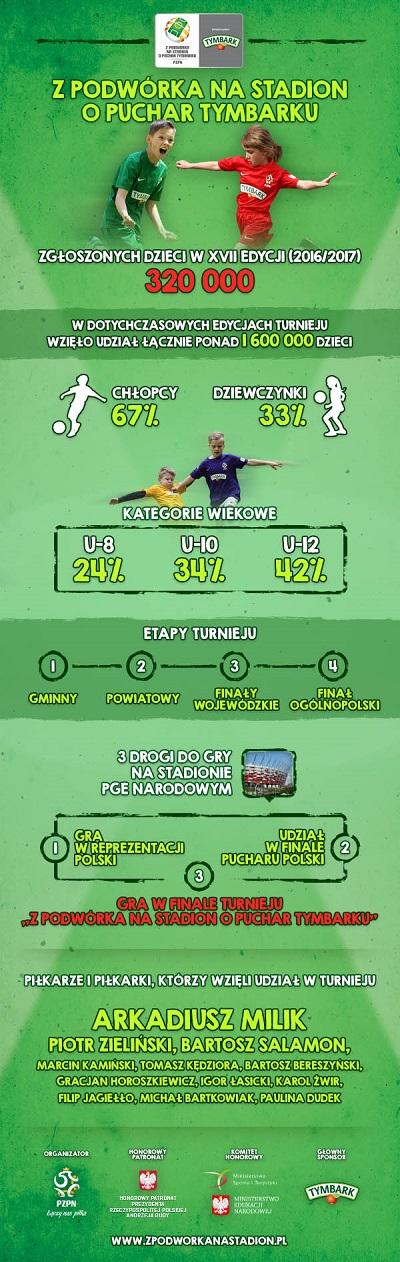 Zwycięzców XVII edycji Turnieju „Z Podwórka na Stadion o Puchar Tymbarku” poznamy 2 maja 2017 roku na murawie Stadionu PGE Narodowego w Warszawie. Mecze finałowe rozegrane zostaną bezpośrednio przed finałem Pucharu Polski. Nagrodą główną dla najlepszy zespołów chłopców i dziewcząt do lat 10 i 12 będzie wyjazd na wyjątkowy mecz piłkarski.
