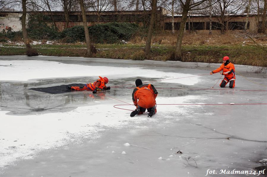 Wyjście w teren, to pobliski staw (może już niedługo ponownie kąpielisko) na Winnej Górze, gdzie pokaz ratownictwa dali strażacy. Było na co popatrzeć, ale myślę, że przede wszystkim powinno dawać do myślenia. Nie ma co kusić losu i bezmyślnie wchodzić na lód, bo niebezpieczeństwo zawsze czyha. Nie zmienia to faktu, że strażacy pokazali, że przygotowani są profesjonalnie na każdą sytuację zagrażającą życiu lub zdrowiu.