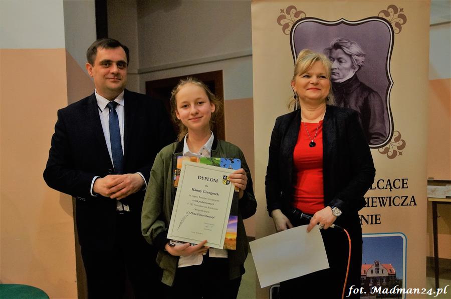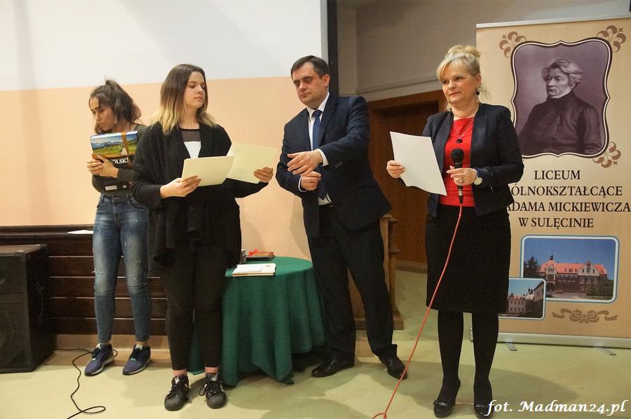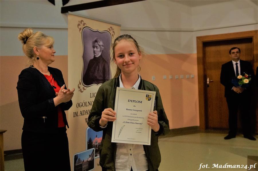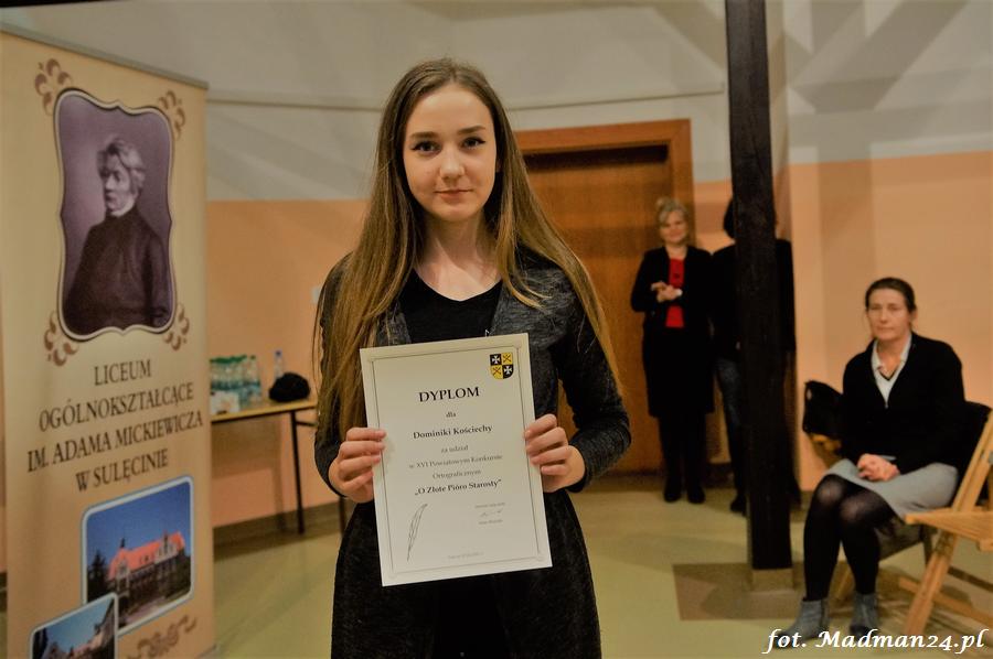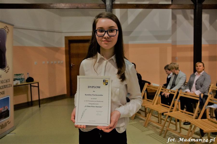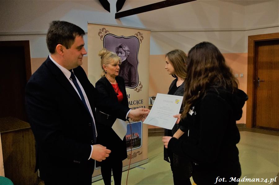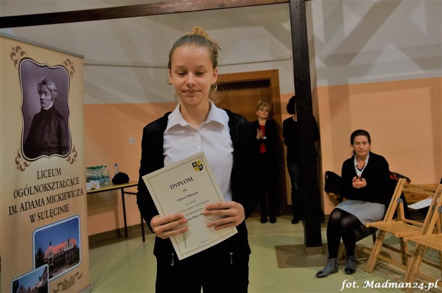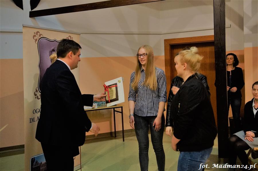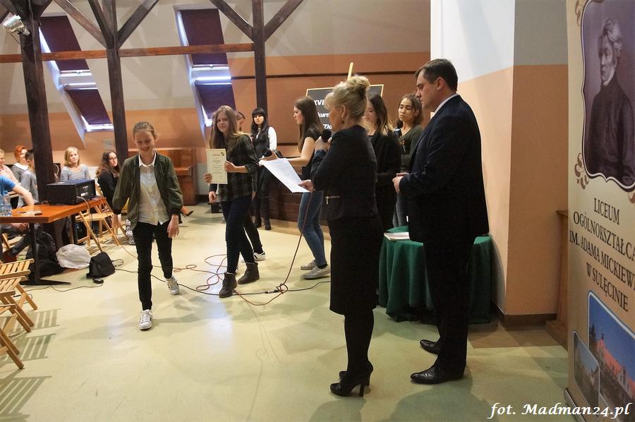 Wszyscy uczestnicy otrzymali dyplomy. Dyplomy i nagrody wręczali: dyrektor LO Aleksandra Jasicka oraz wicestarosta Tomasz Prozorowicz.