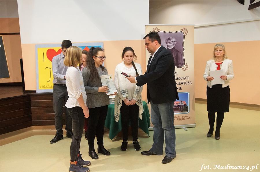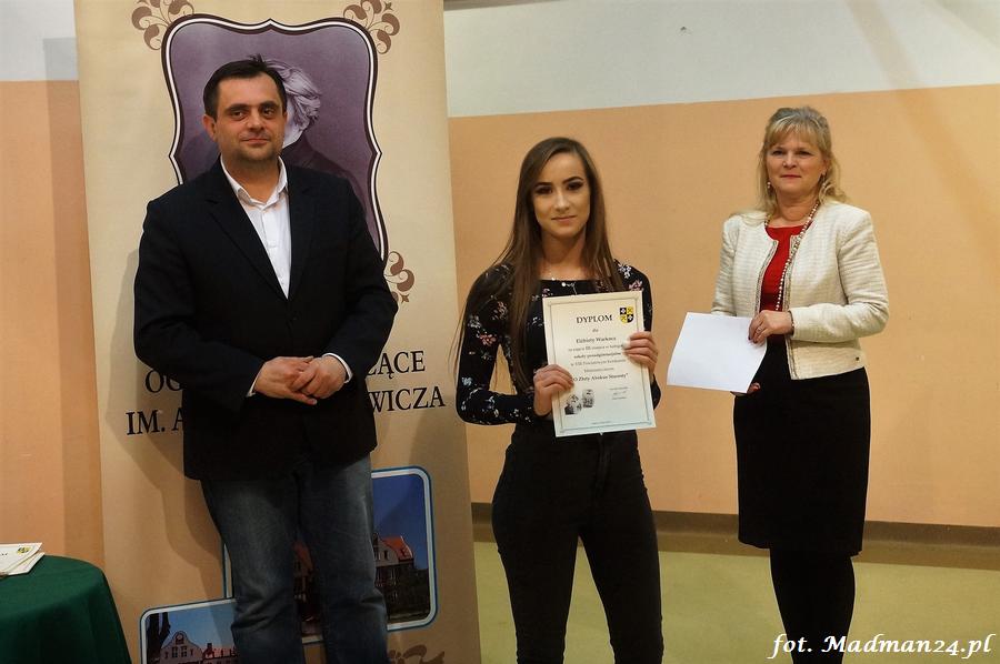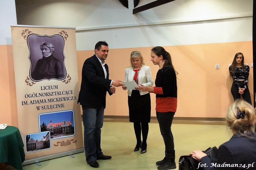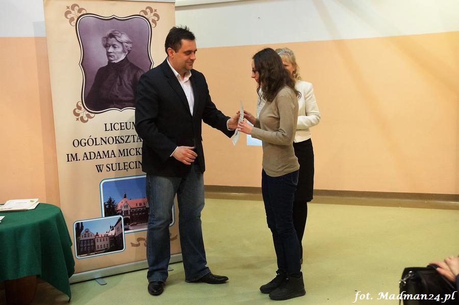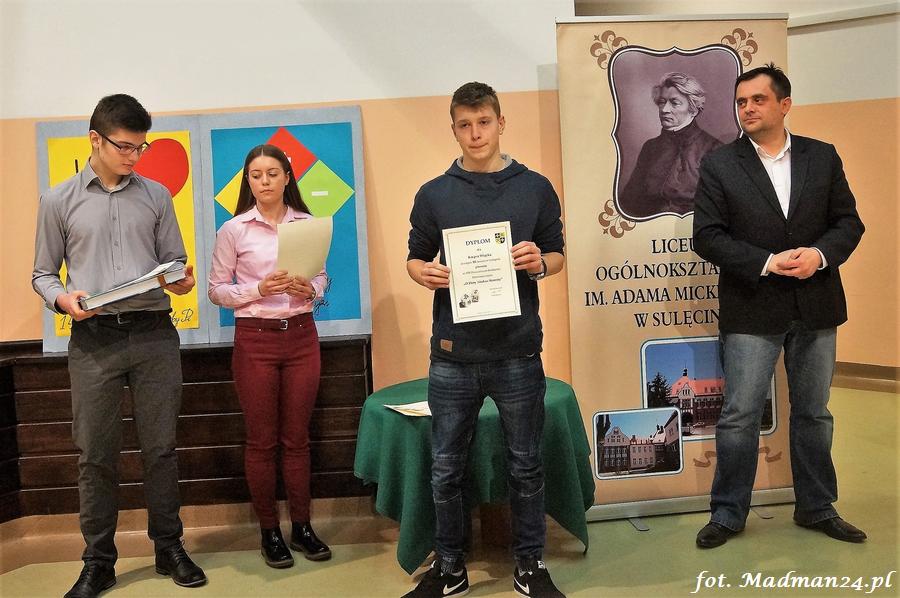 Wszyscy uczestnicy otrzymali pamiątkowe dyplomy. Nagrody i dyplomy wręczali: dyrektor LO Aleksandra Jasicka oraz wicestarosta Tomasz Prozorowicz.