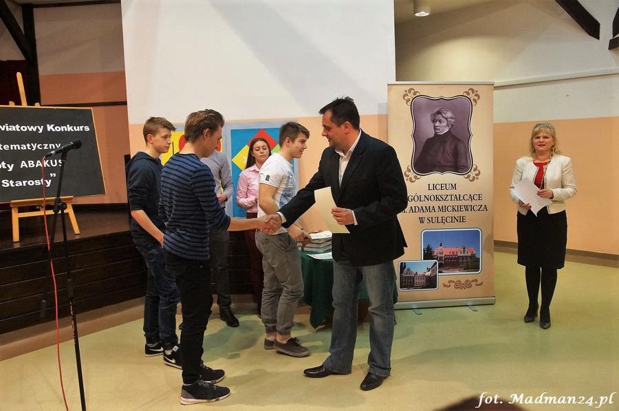 W dniu dzisiejszym w Liceum Ogólnokształcącym im. Adama Mickiewicza odbył się VIII Powiatowy Konkurs o „Złoty ABAKUS Starosty”.