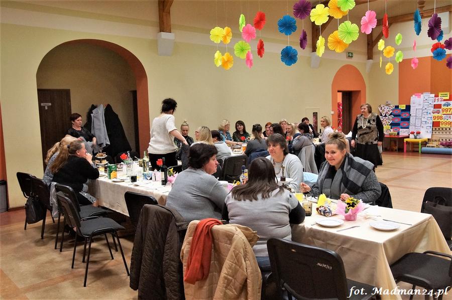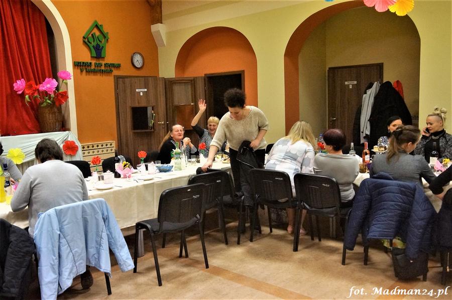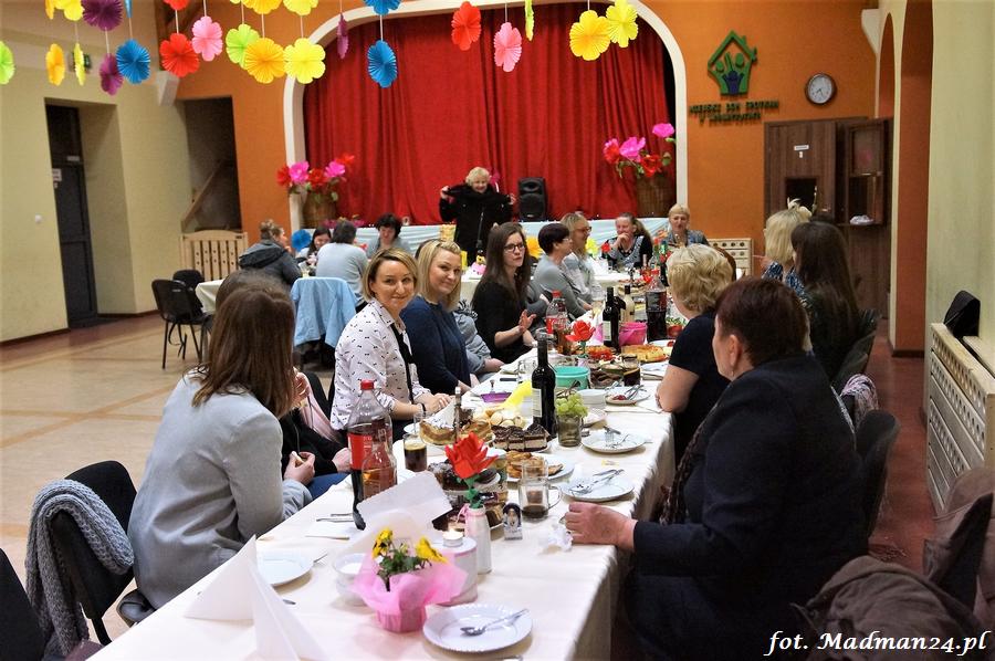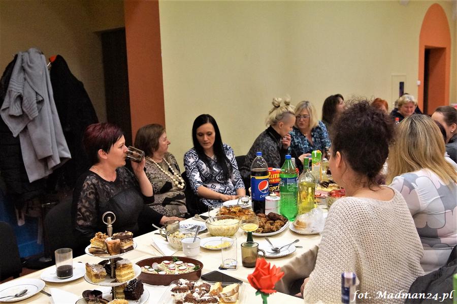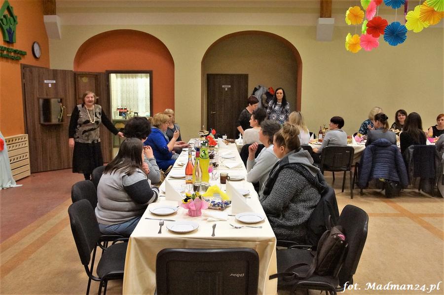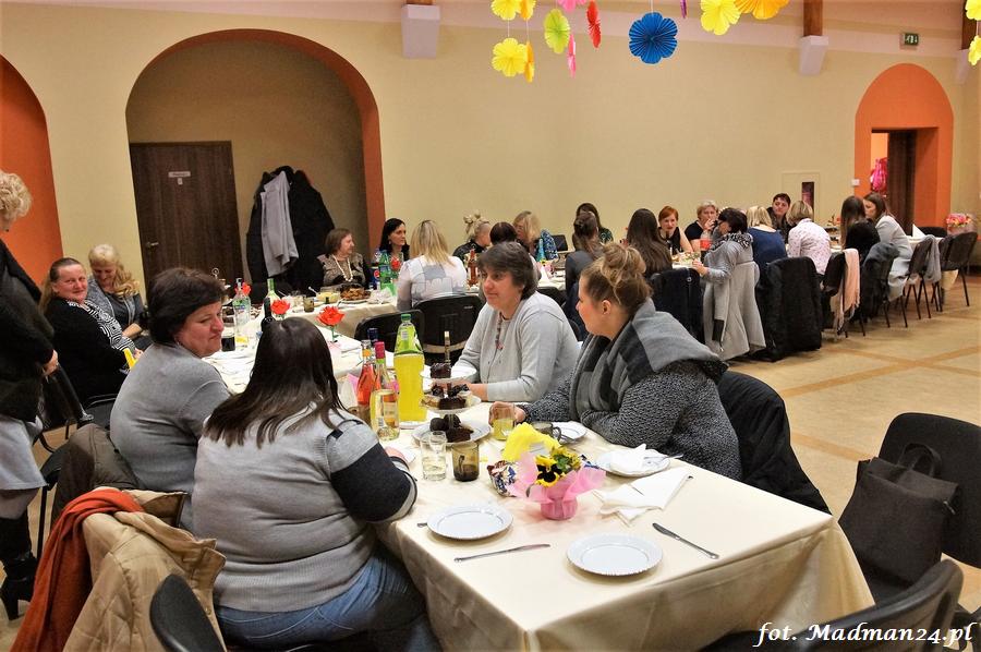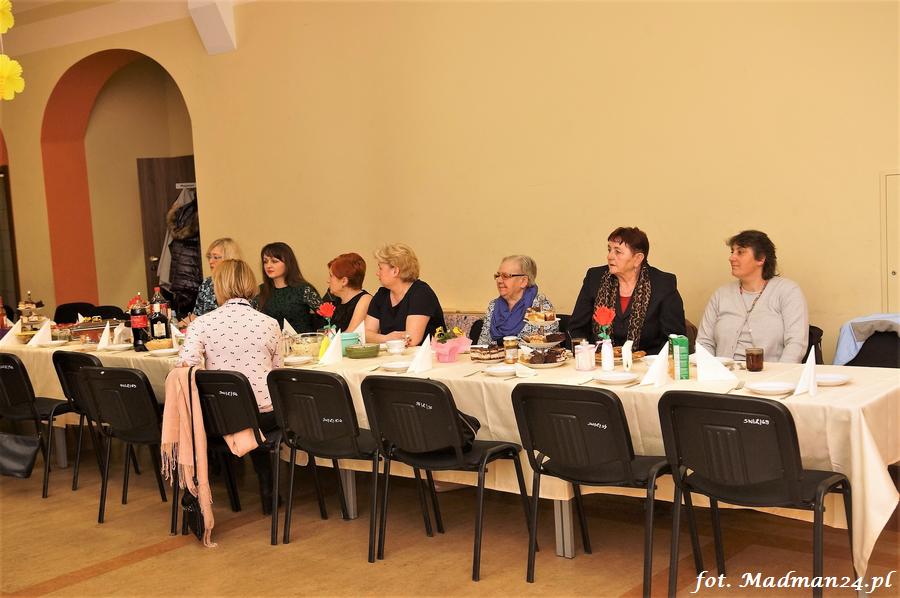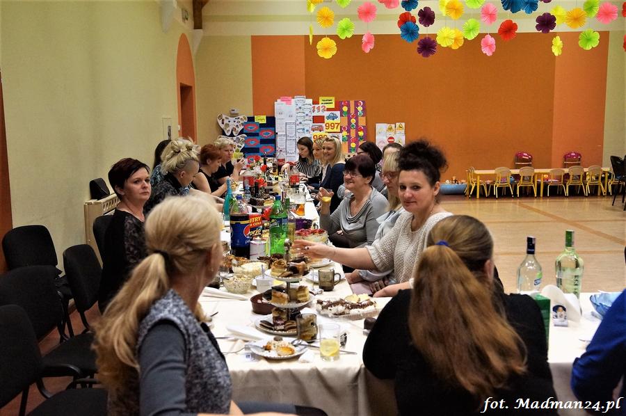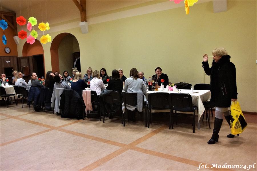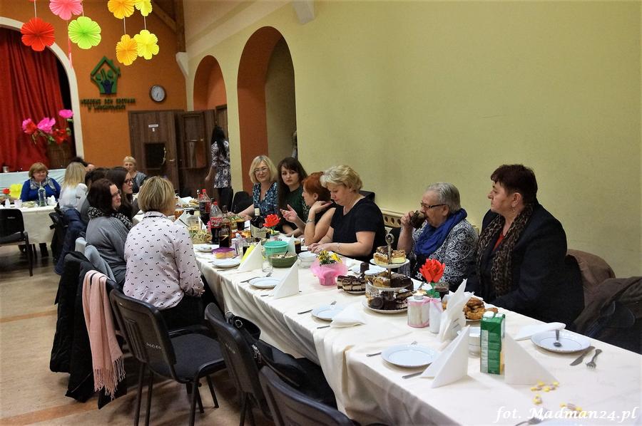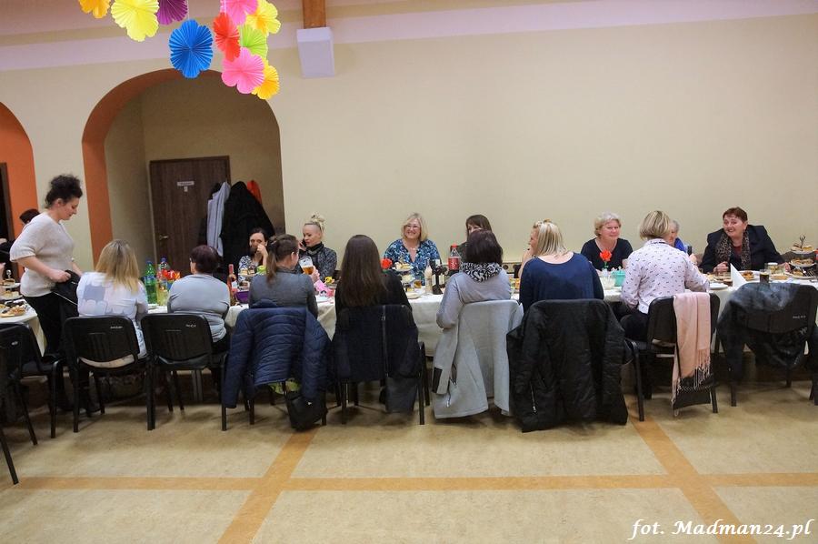 W sobotę 11 marca w świetlicy obchodzona trochę spóźniony Dzień Kobiet. Ponieważ w tym dniu był także Dzień Sołtysa, więc wszystko zaczęło się od wręczenia kwiatów dla p. Leokadii Dębskiej. Odśpiewano także tradycyjne 100 lat. Później zaczęto już świętować w kobiecym gronie, ale z jednym rodzynkiem w tym sympatycznym towarzystwie. Czułem się jak w raju, tylko Ew było więcej…