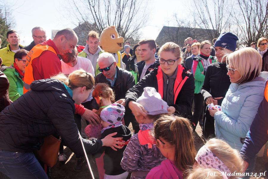 O świetnej organizacji już było, ale muszę wspomnieć o Lucynie Poznańskiej. Sama w biegu nie startowała, ale patrząc ile przebyła kilometrów, myślę, że dystans biegu głównego przebyła podwójnie. Wszędzie było jej pełno. Nie na darmo w rozmowie, która odbyła się parę dni wcześniej kilkakrotnie powtarzała „ten bieg to moje oczko w głowie”.