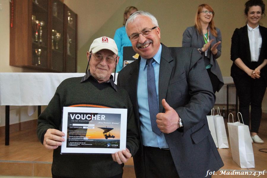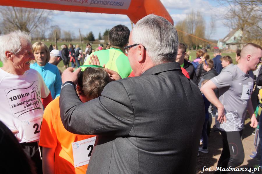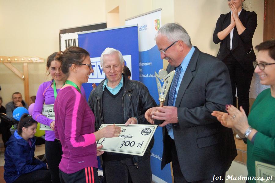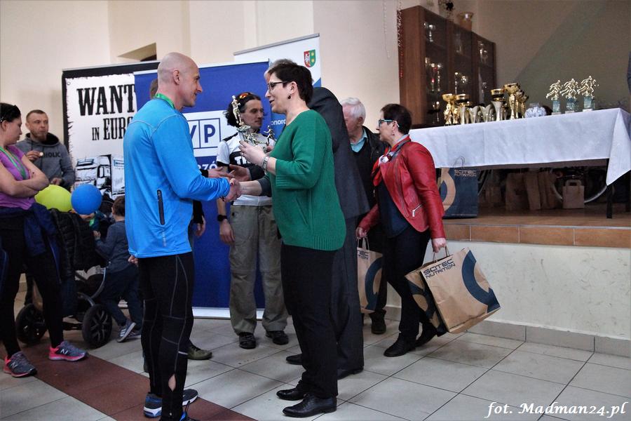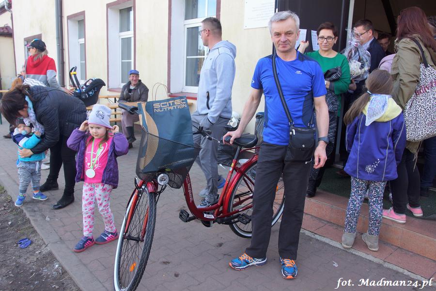 Wśród wszystkich uczestników biegu rozlosowano też nagrody rzeczowe. Rowerem odjechał (i to prawdopodobnie w pełnym tego słowa znaczeniu, bo w trakcie rozmowy powiedział: „jak nie wejdzie do samochodu, to podjadę do stacji kolejowej w Nowinach Wielkich) p. Janusz Ratajczak z Drawska.
