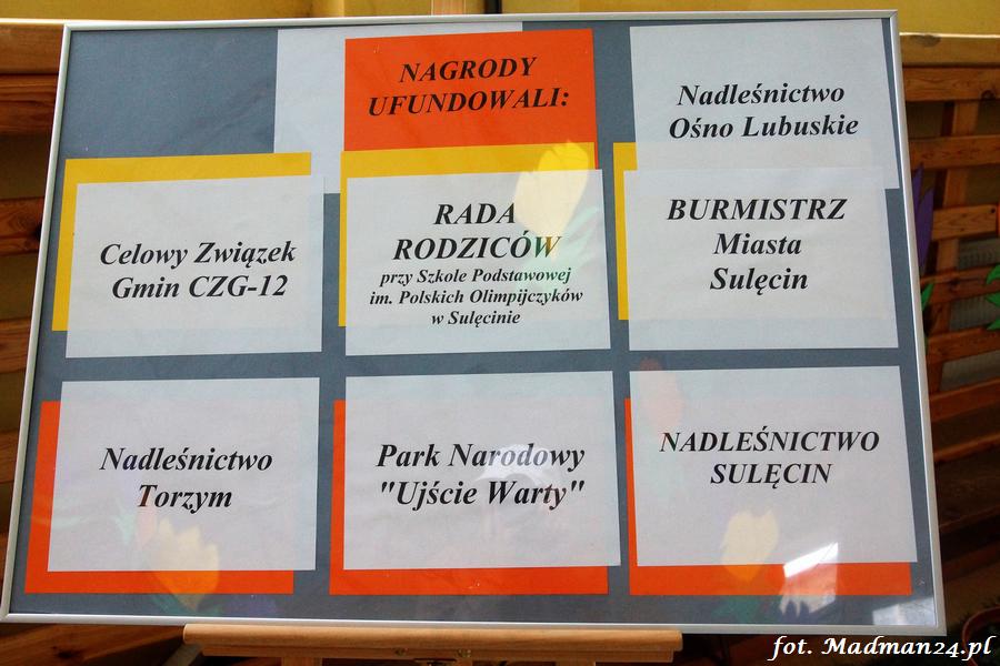 W Szkole Podstawowej im. Polskich Olimpijczyków w Sulęcinie odbył się dzisiaj XVI Międzyszkolny Konkurs Wiedzy o Polskich Parkach Narodowych. Do konkursu przystąpiło 11 szkół podstawowych z następujących miejscowości: Białków, Bledzew, Golice, Kołczyn, Kunowice, Lubniewice, Słubice, Sulęcin, Torzym, Trzemeszno oraz Wędrzyn. Przyczyna nieobecności uczniów z Krzeszyc i Kowalowa była prozaiczna, po prostu w tych szkołach pomylono termin konkursu.