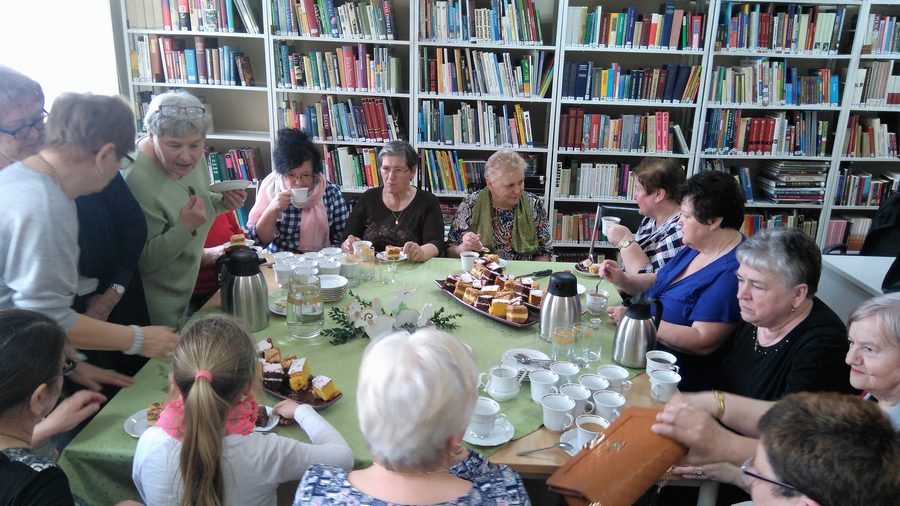 Po zwiedzeniu ,,Sali wystaw” przyszła kolej na małe,, co nieco” przy kawie i herbacie. Sympatyczna jak zawsze atmosfera i doskonały humor dopisywały podczas luźnych rozmów przy poczęstunku. Nadarzyła się okazja do podzielenia się nawzajem tradycjami jakie bywały w naszych rodzinach w okresie z dzieciństwa oraz z lat młodości naszych dziadków i pradziadków.