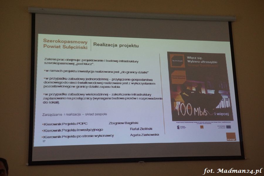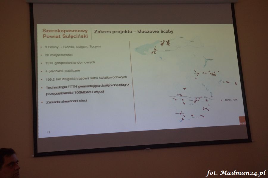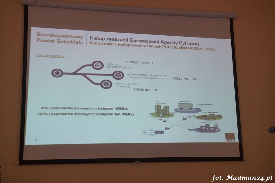 W piątek w Zespole Szkół Licealnych i Zawodowych zainaugurowano projekt pn „SZEROKOPASMOWY POWIAT SULĘCIŃSKI”. Przedsięwzięcie prowadzone jest przez firmę Orange Polska w ramach Programu Operacyjnego Polska Cyfrowa. Jest to kolejny etap cyfryzacji naszego terenu. Pod koniec roku zakończono podobne przedsięwzięcie na terenie gminy Sulęcin. Orange Polska doprowadziła praktycznie do wszystkich sołectw światłowody, o czym mówił w trakcie spotkania burmistrz Dariusz Ejchart.