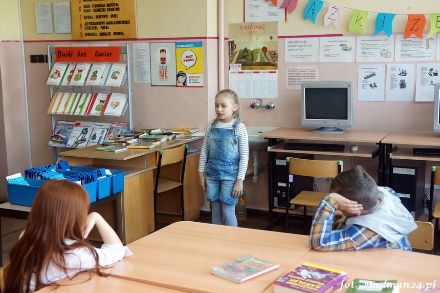 W dniu dzisiejszym w Szkole Podstawowej im. Polskich Olimpijczyków odbyły się eliminacje do Powiatowego Konkursu Recytatorskiego. W szranki stanęło 17 uczniów (15 dziewczynek i 2 chłopców) z klas I-III.