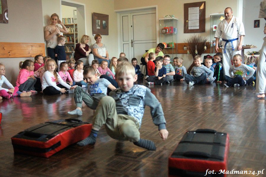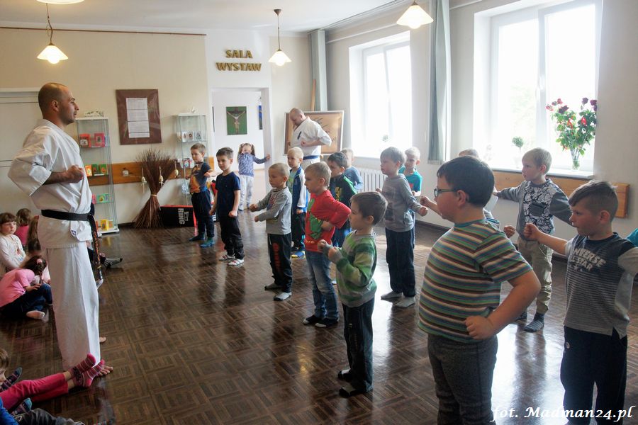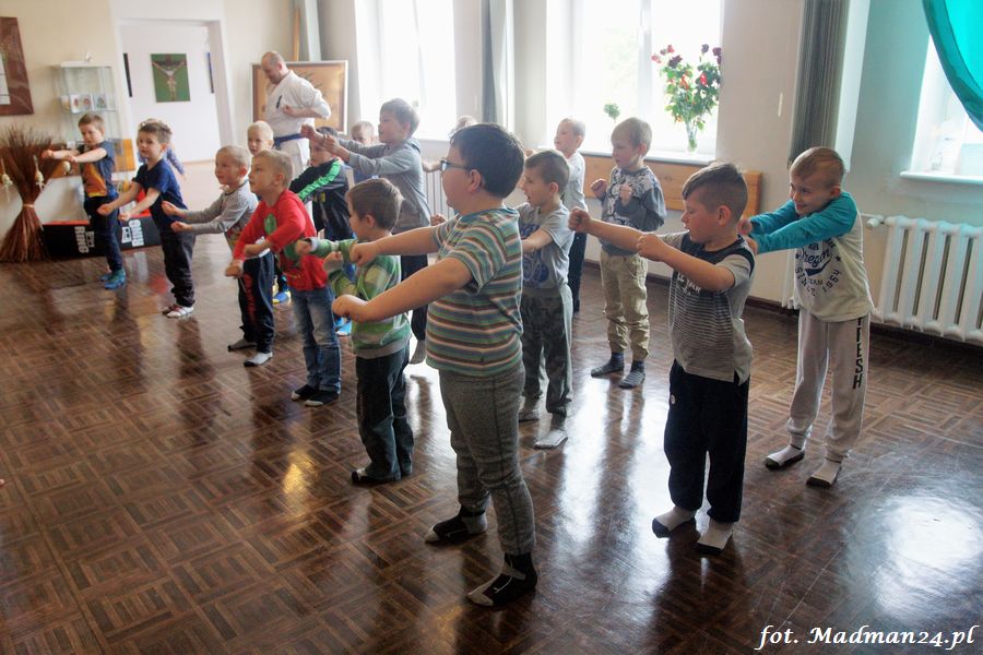 Spóźniłem się, a do tego zapomniałem zabrać kimono. Może i dobrze, bo zawodnicy byli naprawdę groźni i wcale nie mam na myśli dwóch panów ubranych na biało. Dzieci z Przedszkola w Krzeszycach, bo o nich mowa, przykładali się do treningu z ogromnym zapałem.