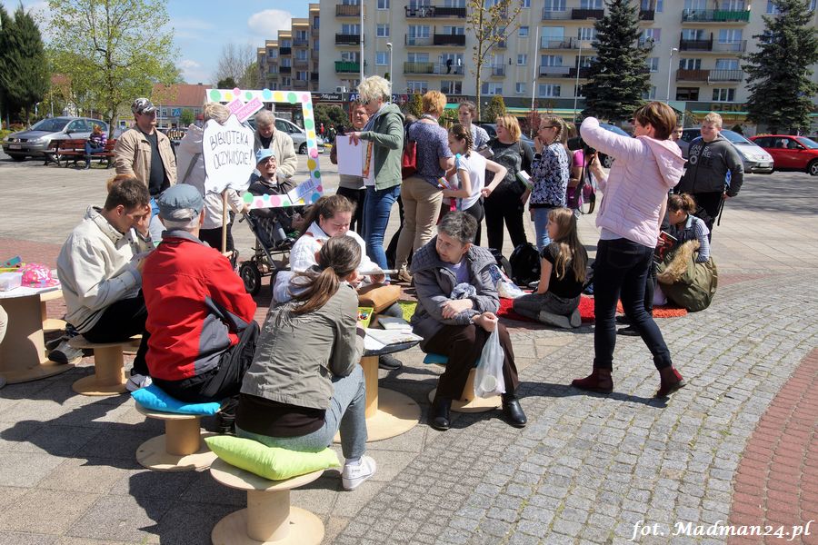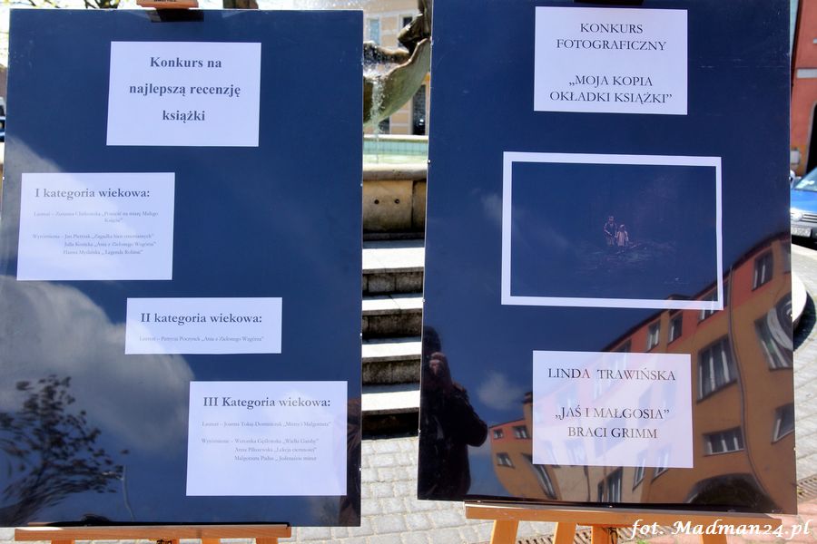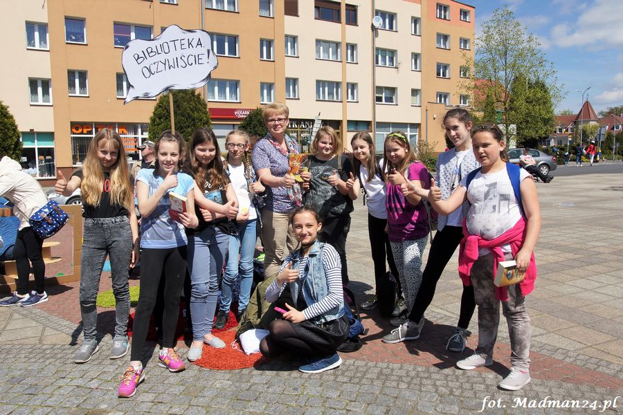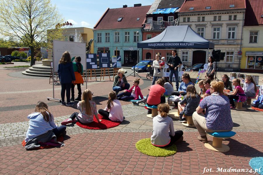 „Biblioteka w Plenerze” – z takim hasłem bibliotekarki z Biblioteki Publicznej w Sulęcinie stanęły dzisiaj na pl. Czarnieckiego. Oprócz propagowania czytelnictwa były też konkursy. O dziwo pogoda po ostatnich anomaliach tym razem dopisała. Zawsze myślałem, że to proboszcz ma układy na górze, a dzisiaj okazało się, że nie tylko. Frekwencja była rotacyjna, np. p.Grażyna Dobrowolska pojawiła się dwa razy, oczywiście za każdym razem z inną klasą.