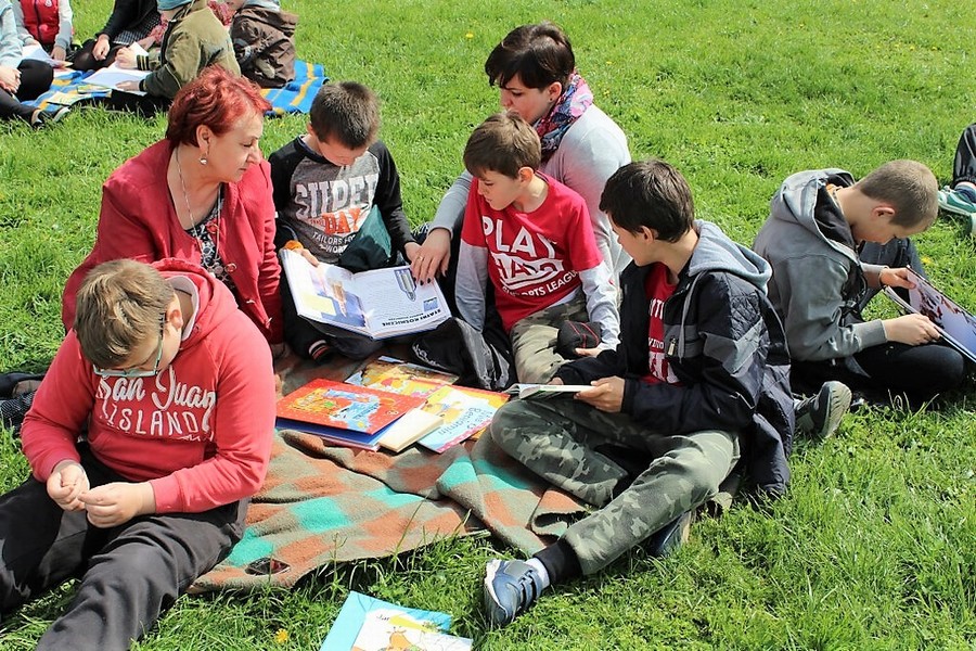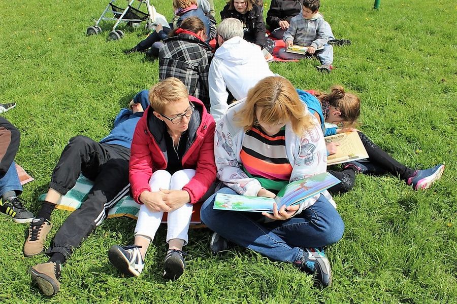 W piękny słoneczny dzień na „pikniku” z książką, wszyscy się dobrze bawili i przekonali się, że książkę można czytać w każdej sytuacji i każdym miejscu.
