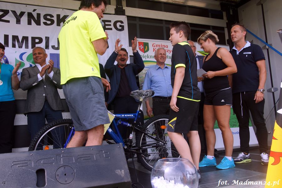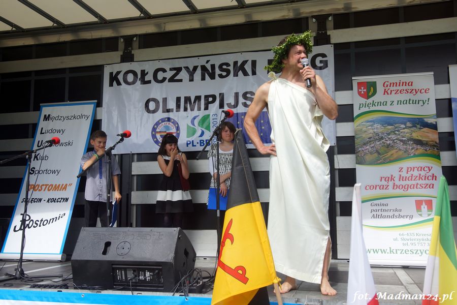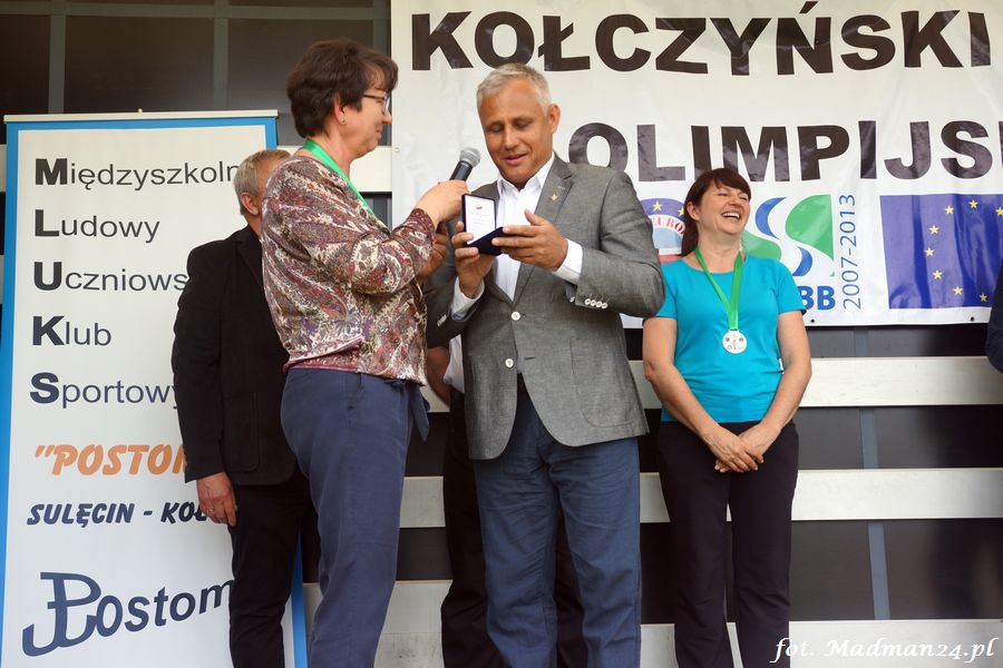 Jak przystało było uroczyste zapalenie znicza i byli też mistrzowie olimpijscy. Wśród zaproszonych oficjeli aż roiło się od prezesów i dyrektorów. Nie chcąc nikogo pominąć nie będę podawał nazwisk. W Kołczynie panowała wspaniała atmosfera. Na pochwałę zasługuje organizacja imprezy. Była loteria fantowa, występy artystyczne i na deser losowanie rowerów. Razem z fantowym był ich 12 i mam nadzieję, że się nie mylę co do ich liczby.
