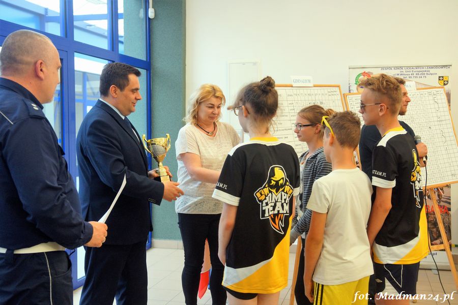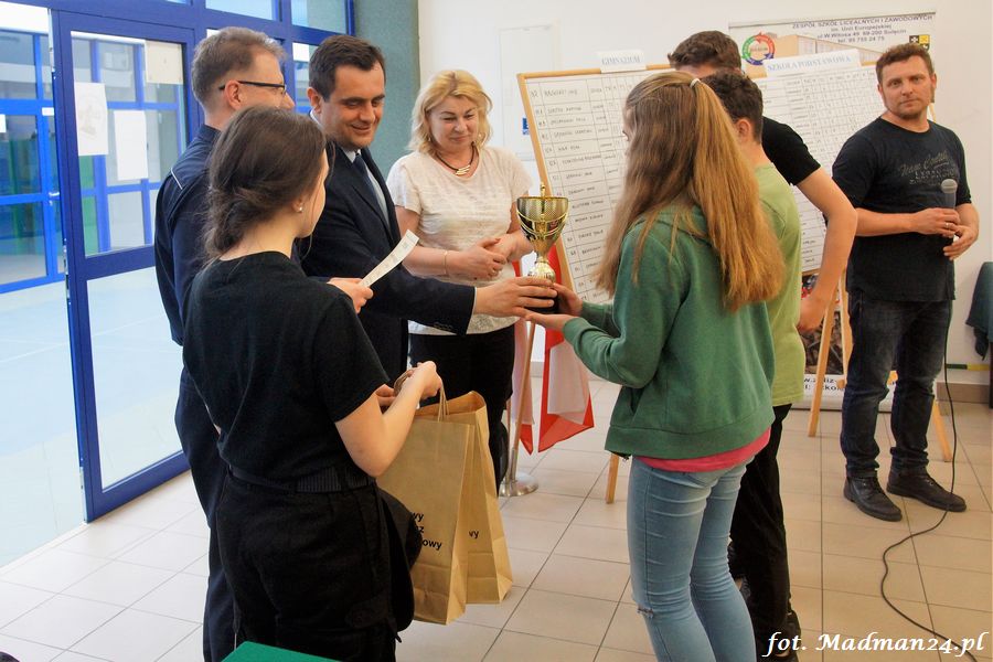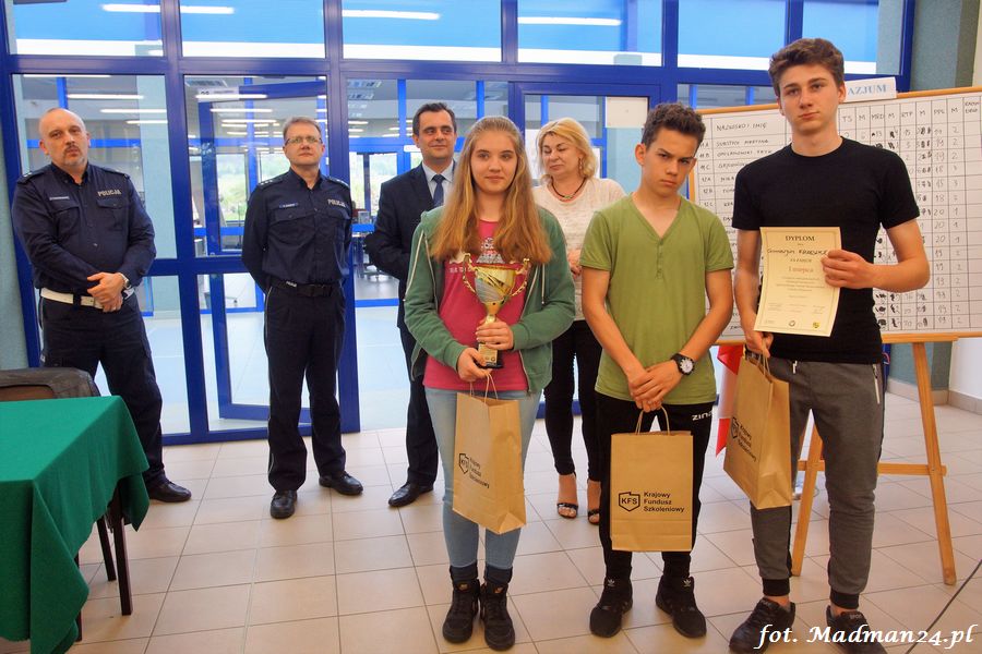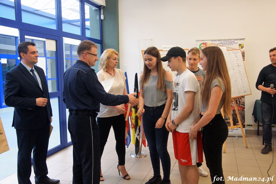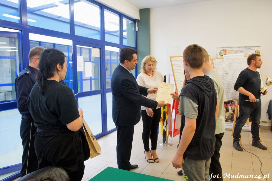Nagrody i dyplomy wręczali: dyrektor Grażyna Sobieraj, wicestarosta Tomasz Prozorowicz i naczelnik wydziału ruchu drogowego KPP w Sulęcinie Robert Parchimowicz.