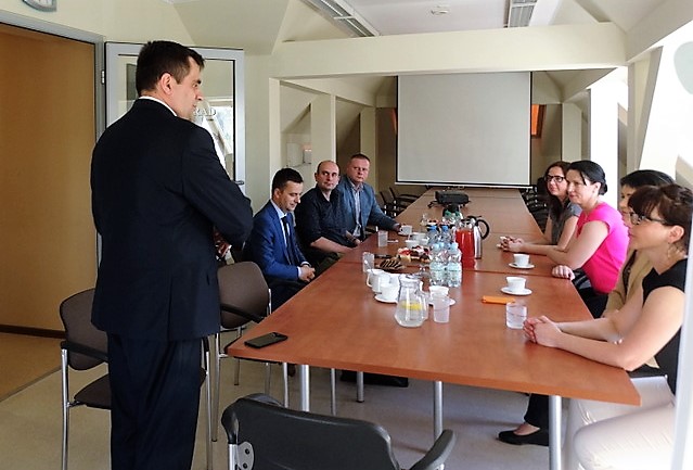 Prelegentem był Michał Bazyluk – kierownik działu utrzymania systemów IT dla klientów zewnętrznych z Polskiej Wytwórni Papierów Wartościowych. W spotkaniu wziął również udział wicestarosta Tomasz Prozorowicz.