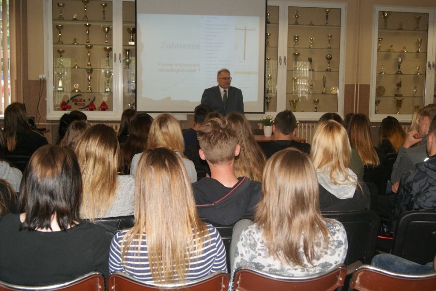 W dniu 24.05.2017r. uczniowie Zespołu Szkół Licealnych i Zawodowych im. Unii Europejskiej w Sulęcinie wzięli udział w kolejnym już spotkaniu z historykiem gorzowskiej Delegatury IPN, panem Jarosławem Palickim, zorganizowanym przy współpracy z Komendą Powiatową Policji w Sulęcinie. Tym razem tematyka wykładu dotyczyła zbrojnego podziemia niepodległościowego czyli tzw. ,,Żołnierzy Wyklętych”. Kiedy?, dlaczego? z jakim skutkiem walczyli dzielni, często bardzo młodzi ludzie, poświęcając swoje życie? .Wszystkie pytanie i wątpliwości dotyczące tej trudnej tematyki zostały rozwiane podczas wykładu i prezentacji. Całość wzbogacono fragmentem filmu dokumentalnego, będącego zapisem z pamiętnika Zdzisława Brońskiego ps. „Uskok”, dowódcy oddziału partyzanckiego AK, który zginął w walce o wolną Polskę w 1949 r.