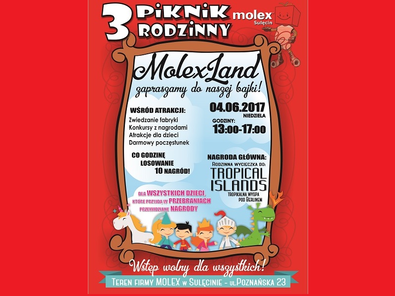 3 RODZINNY PIKNIK Z MOLEX – BAJKOWY ŚWIAT MOLEXLAND – 04.06.2017 MOLEXLAND – Serdecznie zapraszamy Państwa do udziału w 3…