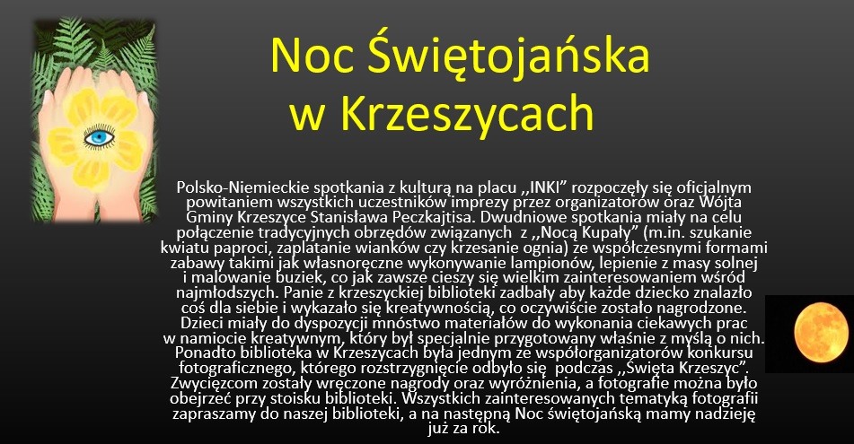 Krzeszyce Noc Świętojańska w Krzeszycach Polsko-Niemieckie spotkania z kulturą na placu ,,INKI” rozpoczęły się oficjalnym powitaniem wszystkich uczestników imprezy przez…