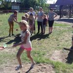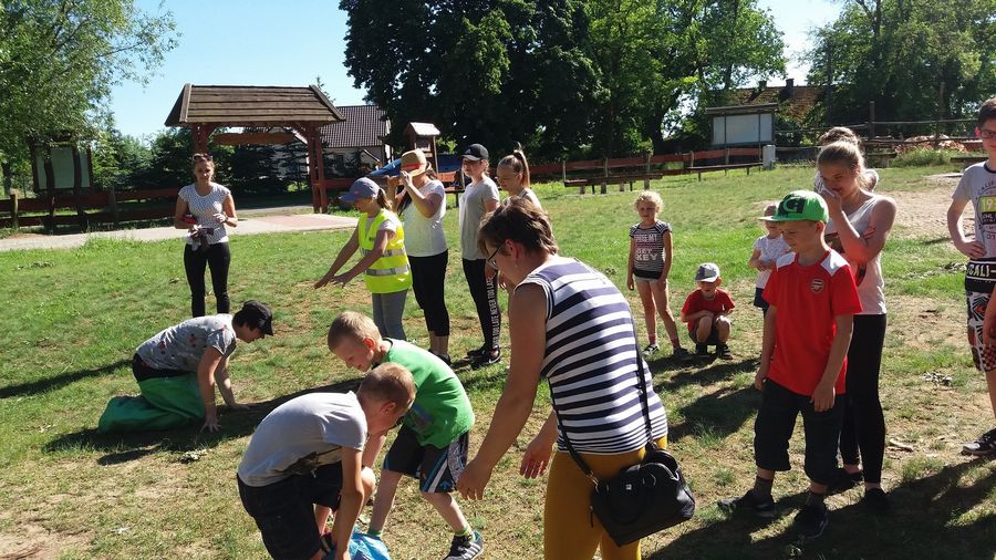 Uczestnicy wycieczki mieli okazję w ramach Dnia Dziecka odwiedzić filię biblioteki w Kołczynie. Sprzyjające warunki pogodowe, świetny humor i wiele konkurencji sportowych odbywało się na placu ,,Kołczyńskie Dęby”. Skoki w workach, wyścigi z jajkiem, skoki na skakance, podchody, zawody z piłką i inne zabawy towarzyszyły nam do wieczora.