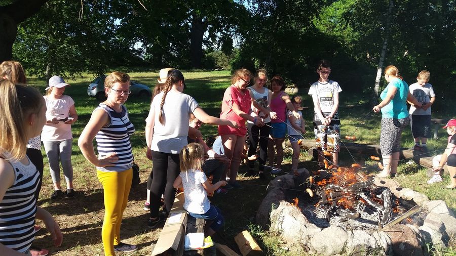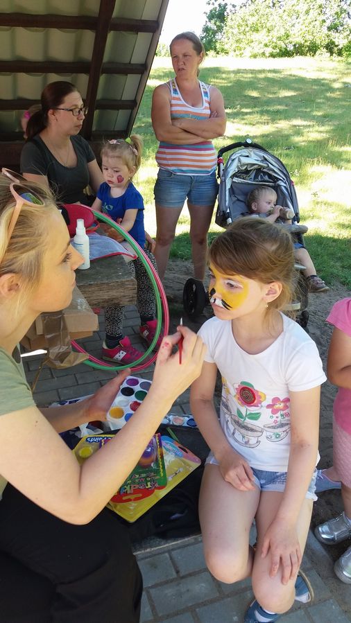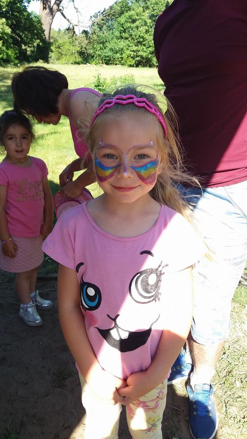 W trakcie pikniku malowane były dla chętnych buźki. Powstały piękne motyle, pająki , smoki a nawet traktor. Na zakończenie wręczone zostały drobne upominki, nagrody i słodkości, a także piekliśmy kiełbaski na ognisku, które dodały wszystkim energii i siły na drogę powrotną. Trochę zmęczone, ale zadowolone dzieciaki już ,,zapisały” się na następną wyprawę.