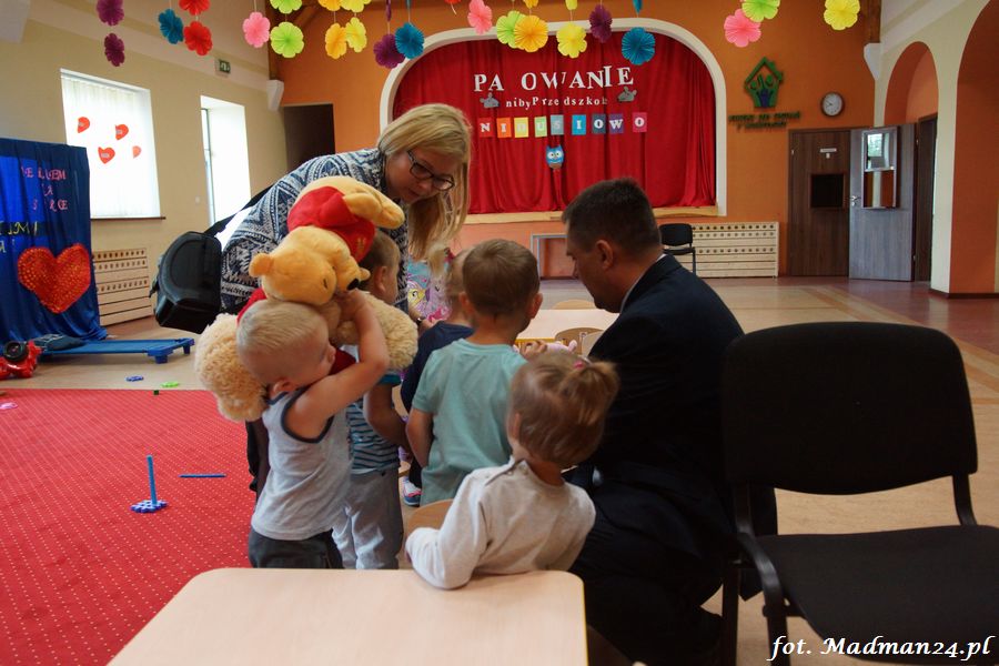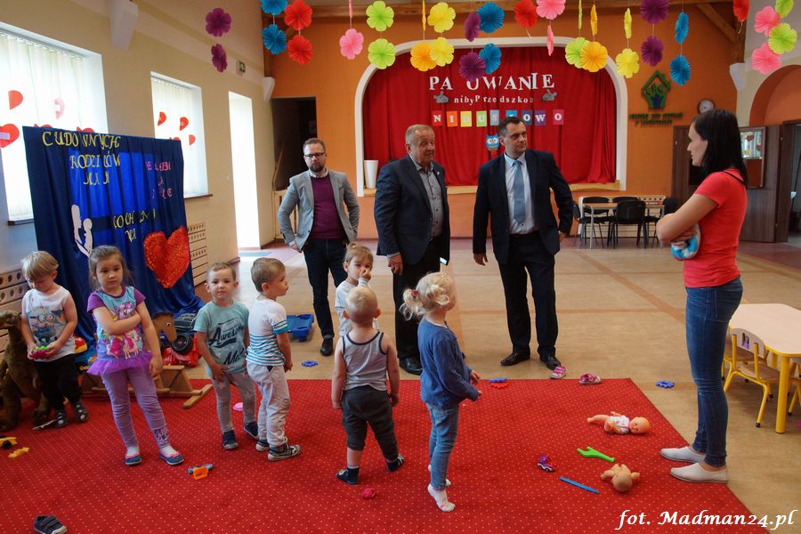 W dniu wczorajszym Nidusiowo odwiedzili niespodziewani goście: Senator RP, Honorowy Prezes Stali Gorzów Władysław Komarnicki i wicestarosta Tomasz Prozorowicz. Dzieci w przedszkolu było tym razem mniej, bo część była „na chorobowym”. Nie przeszkodziło to jednak gościom na chwilę zabawy. Władysław Komarnicki czytał też dzieciom bajki. Wizyta nie była długa, ale miejmy nadzieję, że owocna na przyszłość.