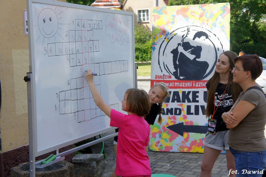 Prezentujemy dużą galerię zdjęć autorstwa Dawida. Oddają one atmosferę na Wake Up Kids, dobrą zabawę i rodzinne świętowanie. Były gry, zabawy i konkursy. Każde dziecko mogło znaleźć coś dla siebie, a przy okazji coś wygrać. Pogoda była wspaniała, więc i o opaliznę nie było trudno. Na scenie wystąpiły oczywiście dzieci. Na naszym Facebooku jest filmik z występu dzieci z Przedszkola nr 2 im. Małych Odkrywców w Sulęcinie – https://www.facebook.com/sulecinmadman/