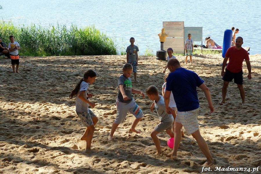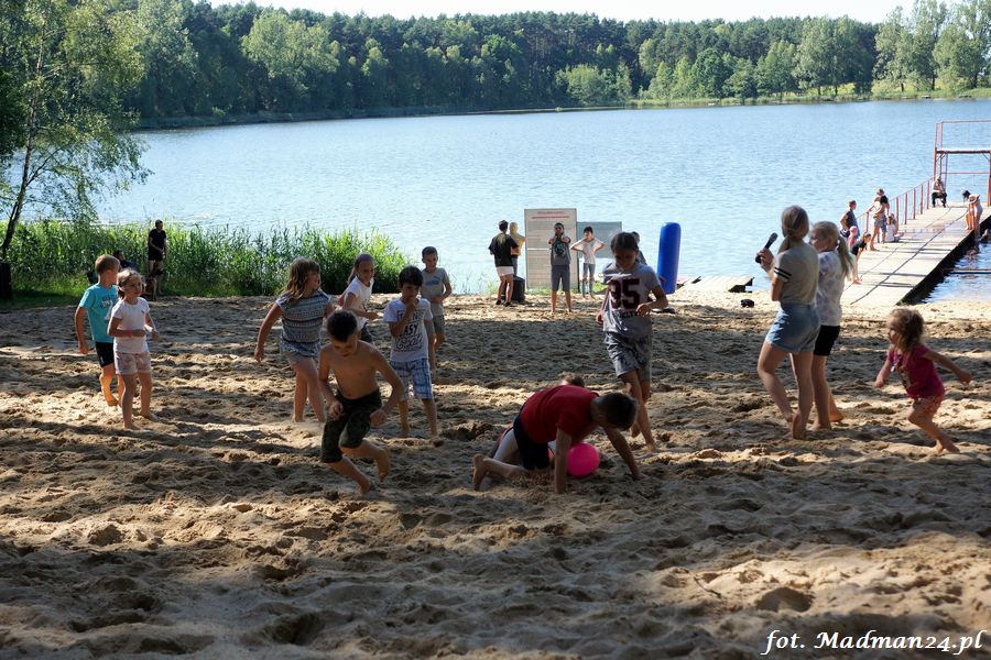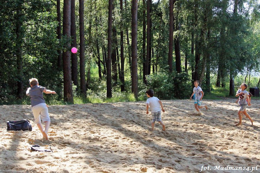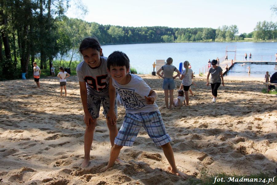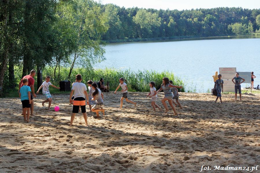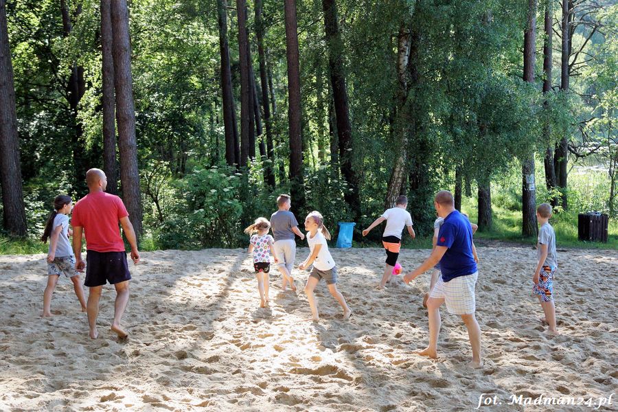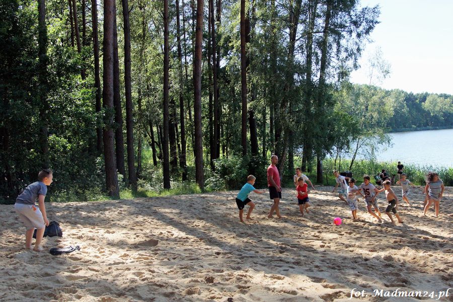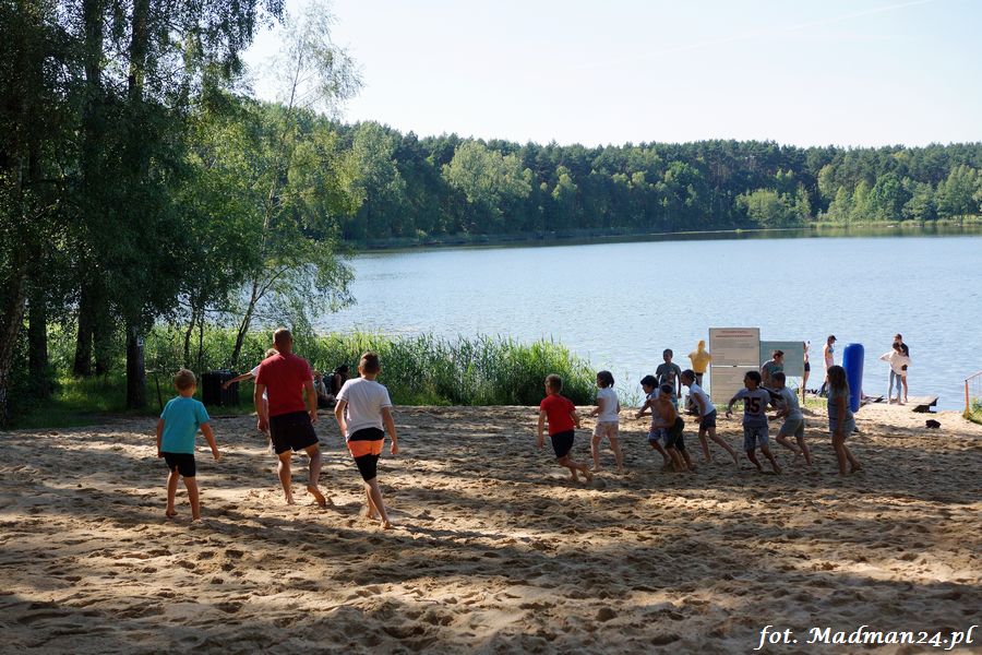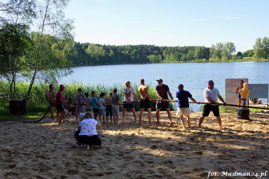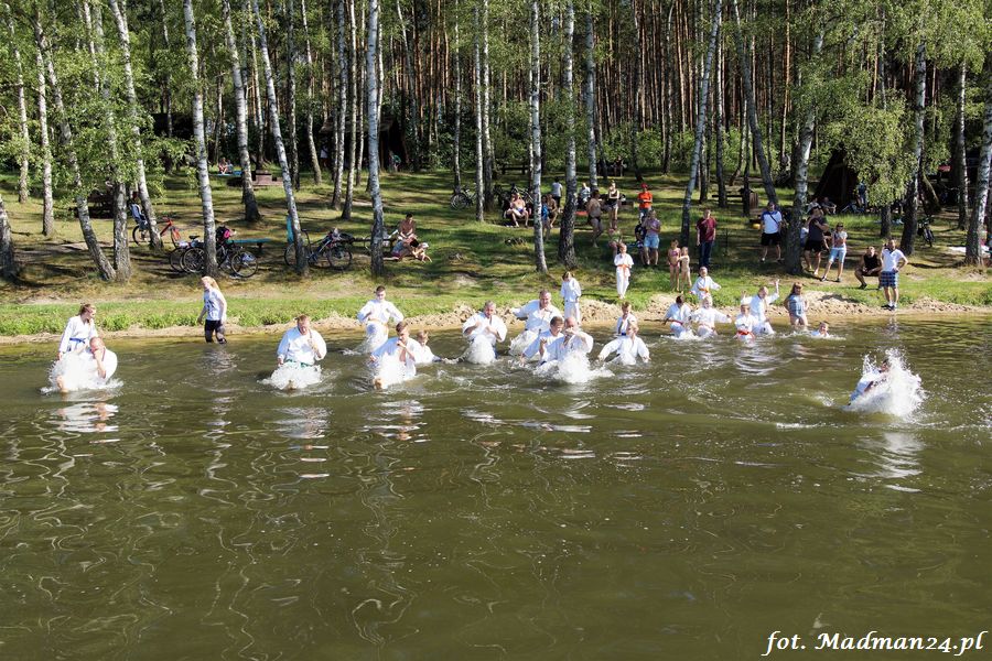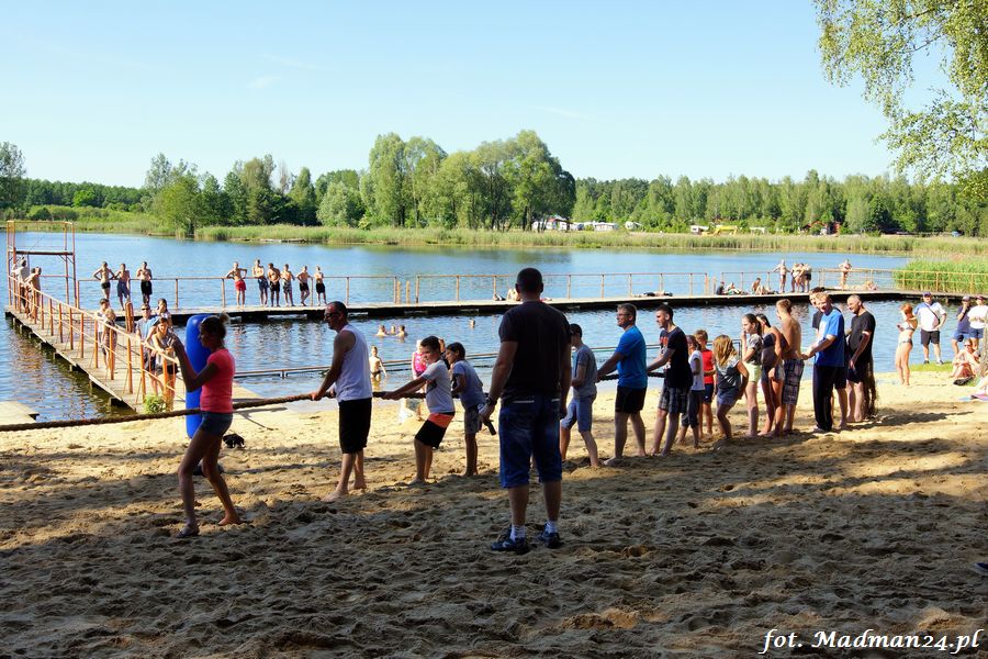 Trening karateków tym razem odbył się nad jeziorem Ostrowskim. Wystarczył jeden wpis Karola Buksztynowicza na Facebooku https://www.facebook.com/karol.buksztynowicz i nad jeziorem zaroiło się od ludzi w kimonach. Karatecy biegali po lesie, grali w piłkę, trenowali w wodzie i na plaży oraz przeciągali linę. To ostatnie wzbudziło bez wątpienia najwięcej emocji. Był pot i była zabawa. Na plaży byli także badmintoniści, a wśród nich świeżo upieczony „Brązowy Robert”. Tym razem jednak tylko w roli obserwatorów.