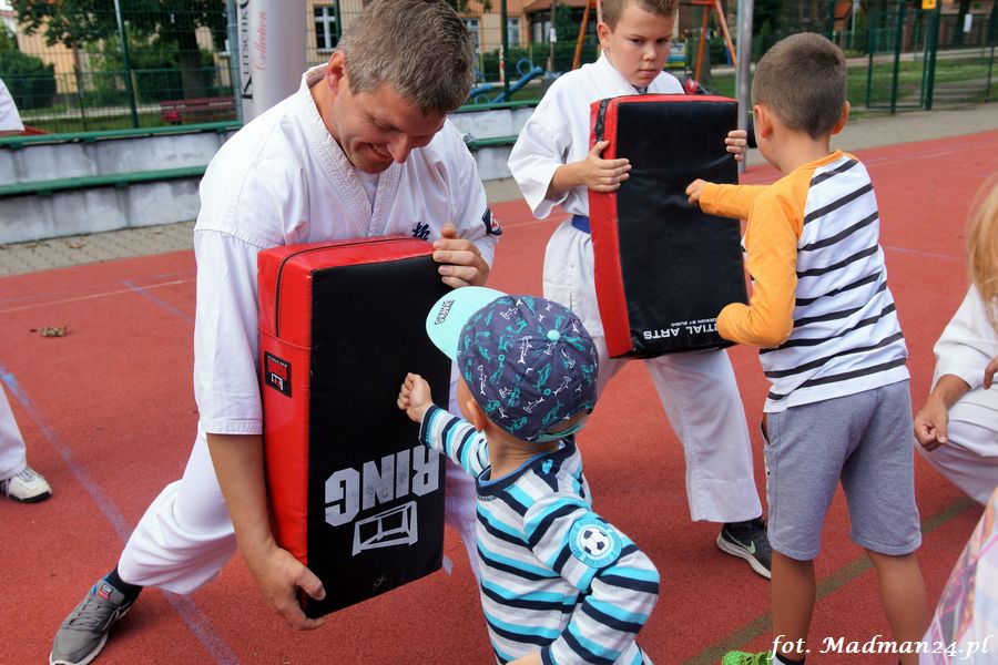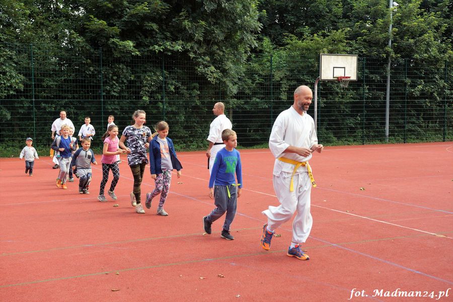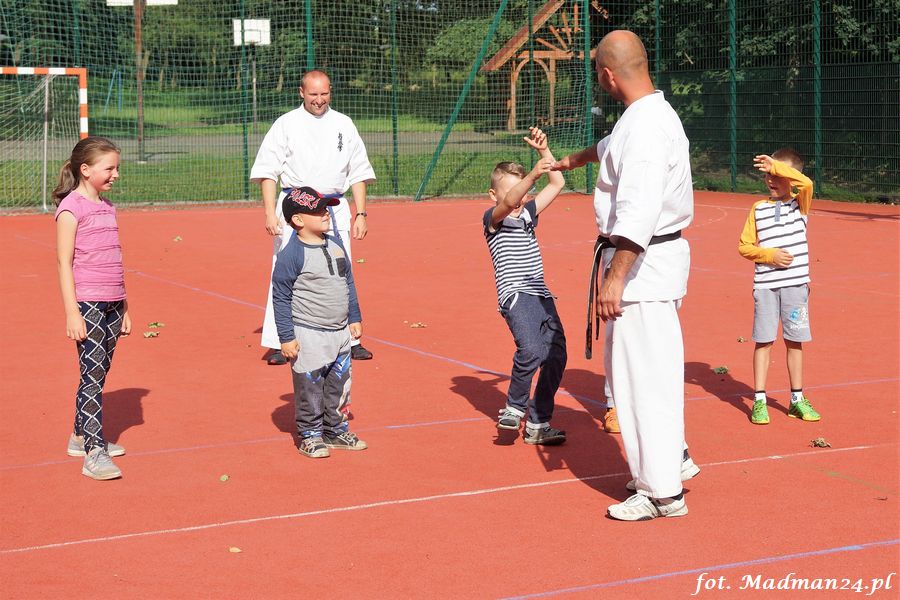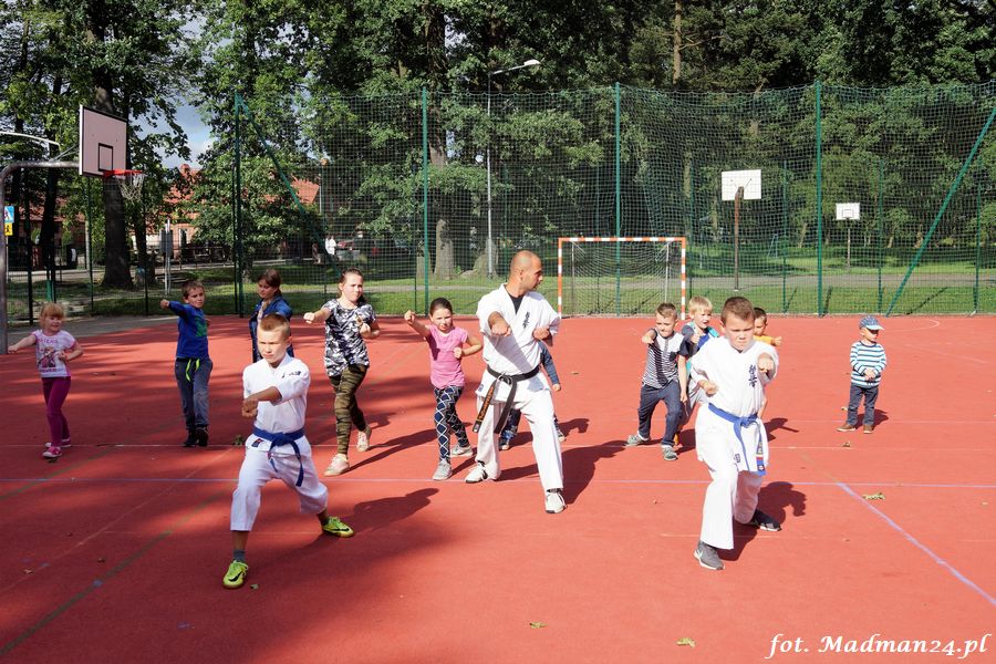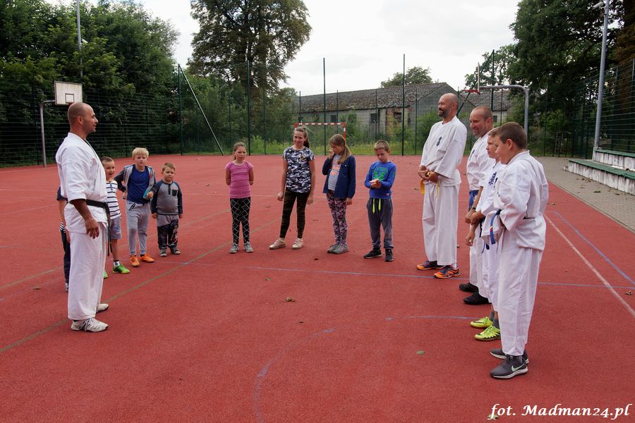 Karatecy zawitali wczoraj do Trzemeszna Lubuskiego. Podczas ubiegłorocznej wizyty był problem z frekwencją, ale tym razem nic takiego się nie stało. Chętnych do treningu nie brakowało. Problem był tylko z dojazdem, bo jak wiemy, w tej chwili Trzemeszno jest „rozkopane”. Zajęcia, to już tradycyjnie połączenie treningu z zabawą. Był też krótki mecz piłki nożnej oraz oczywiście drobne upominki od Karola Buksztynowicza.
