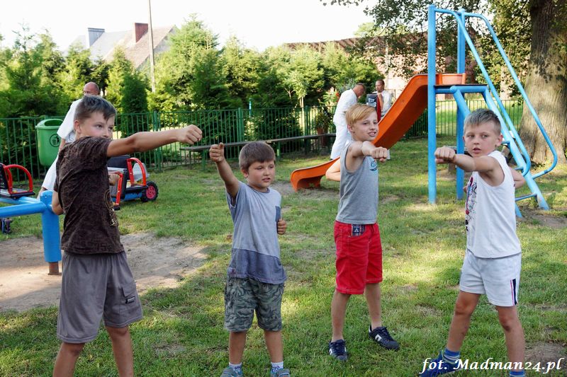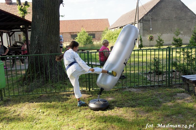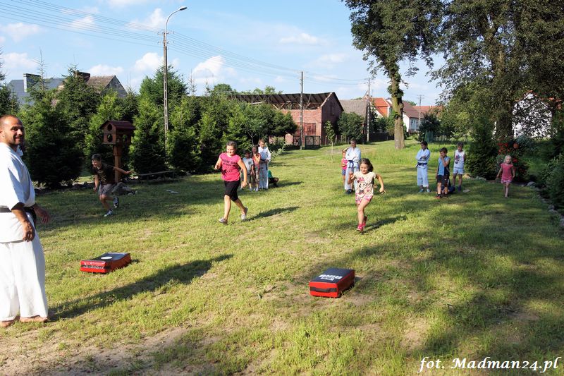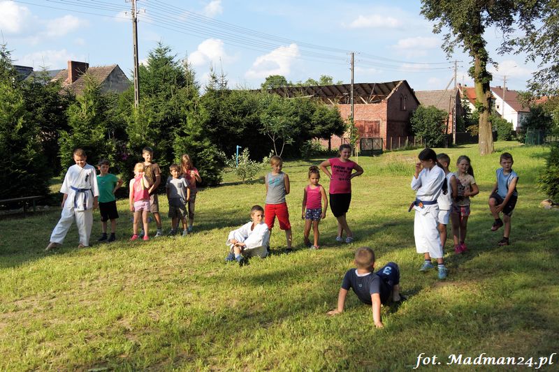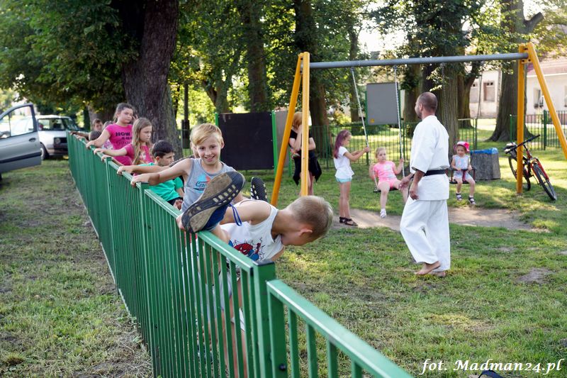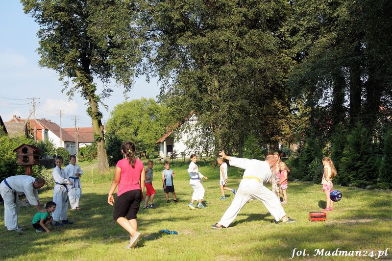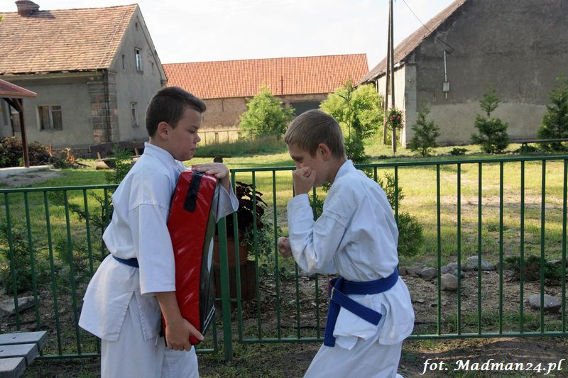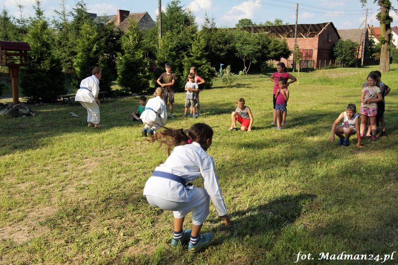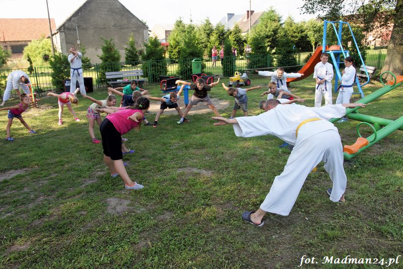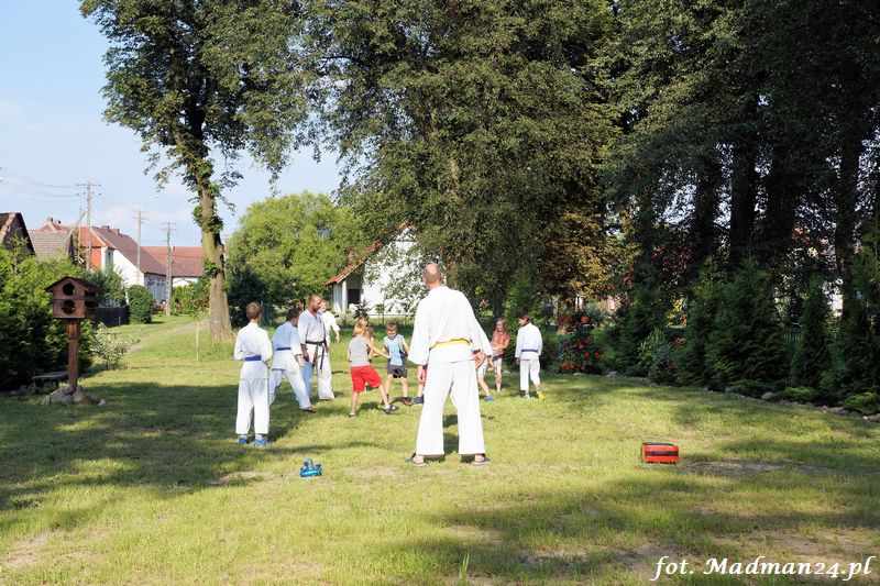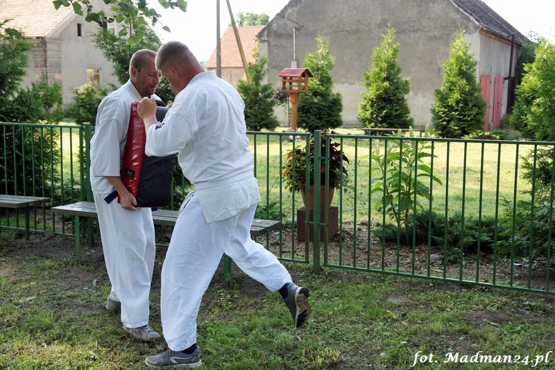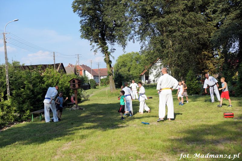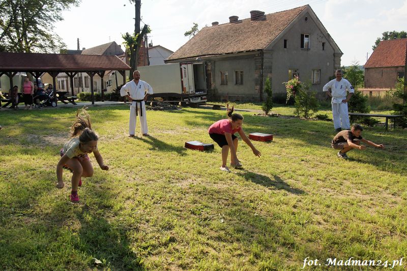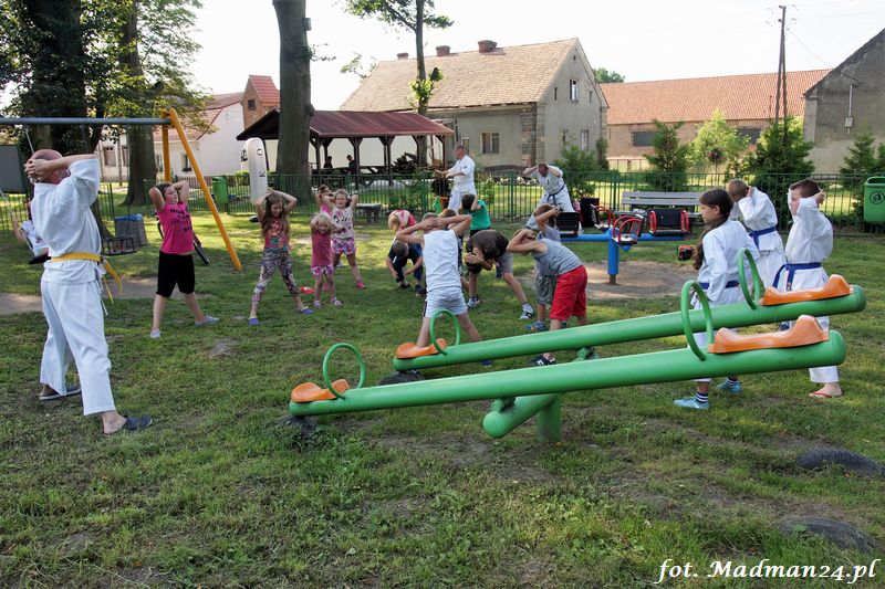 Dzisiejszy zajęcia karate odbyły się na placu zabaw w Żubrowie. Frekwencja, jak zawsze w tej wiosce dopisała. Było miło i wesoło. Na zakończenie treningu odbył się mecz piłki nożnej z serią rzutów karnych.