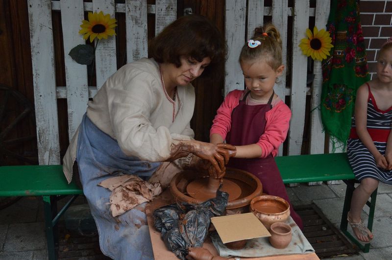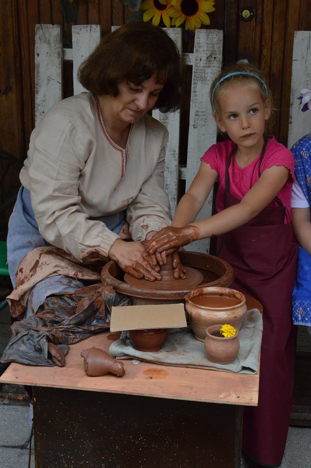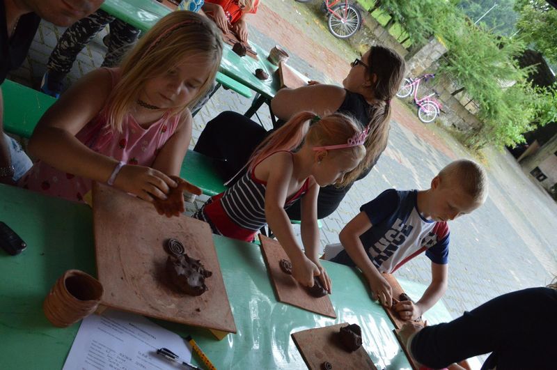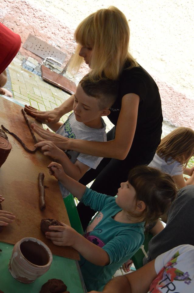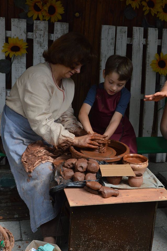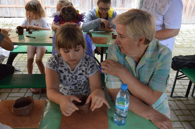 To właśnie dzięki pani Ani, wtorkowe spotkanie w Folkowej Wiosce oraz atrakcja była tak pasjonująca – pani Anna przywiozła do Sulęcina koło garncarskie nożne i dzięki jej nieocenionej pomocy każdy uczestnik naszych zajęć miał okazję zrobić swój niepowtarzalny garnuszek. Każdy z nas mógł zrobić także różne naczynia użytkowe (talerzyki, miseczki) oraz rzeźby z gliny, tym razem metodą wałeczkową, która jest nieco prostsza niż praca na kole garncarskim.