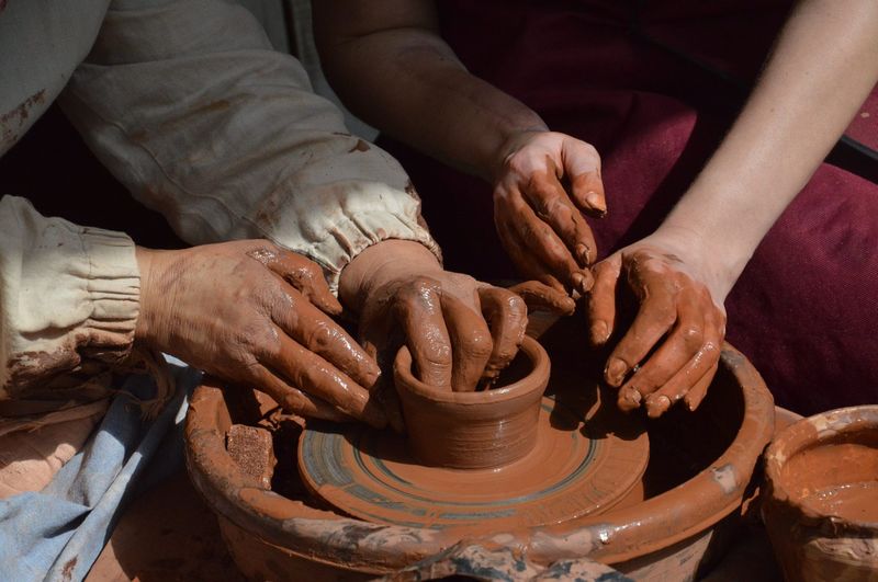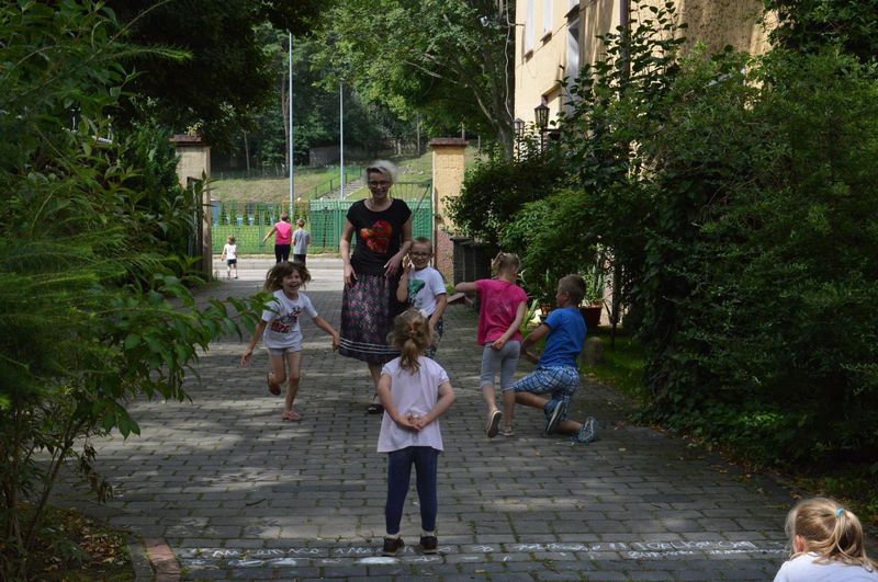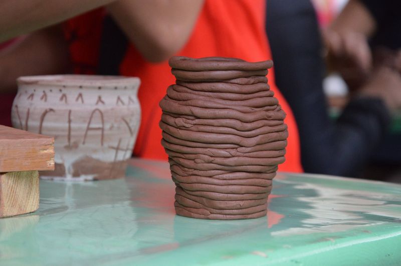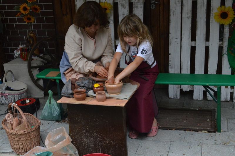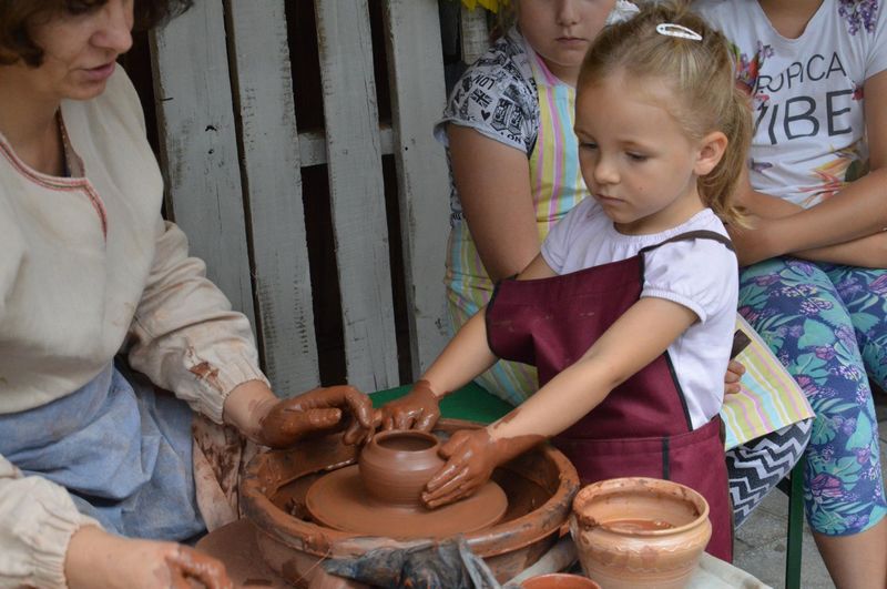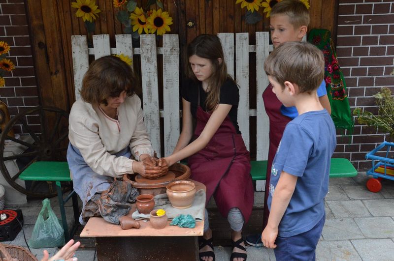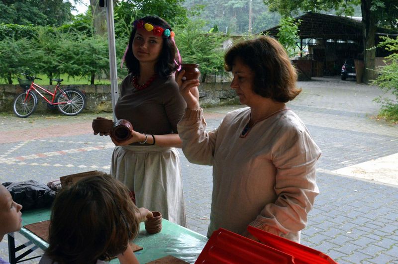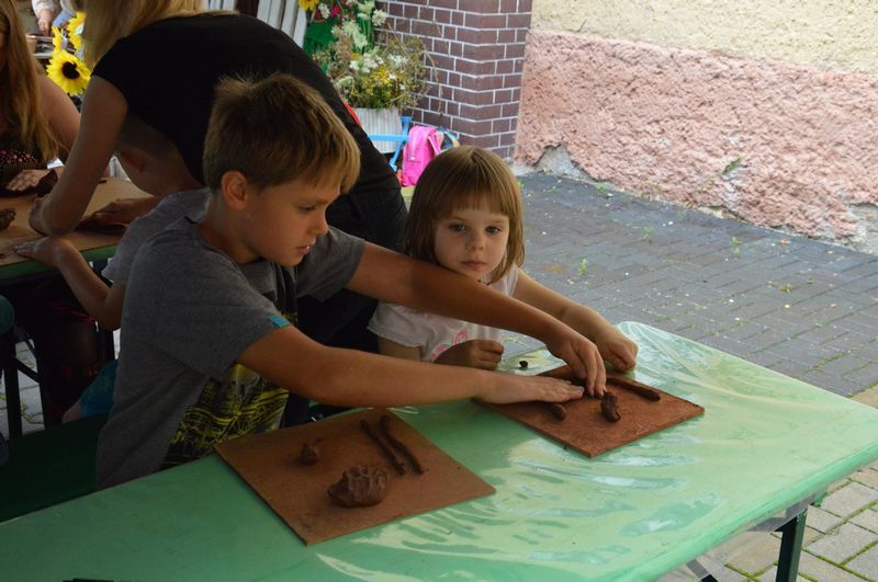 To właśnie dzięki pani Ani, wtorkowe spotkanie w Folkowej Wiosce oraz atrakcja była tak pasjonująca – pani Anna przywiozła do Sulęcina koło garncarskie nożne i dzięki jej nieocenionej pomocy każdy uczestnik naszych zajęć miał okazję zrobić swój niepowtarzalny garnuszek. Każdy z nas mógł zrobić także różne naczynia użytkowe (talerzyki, miseczki) oraz rzeźby z gliny, tym razem metodą wałeczkową, która jest nieco prostsza niż praca na kole garncarskim.