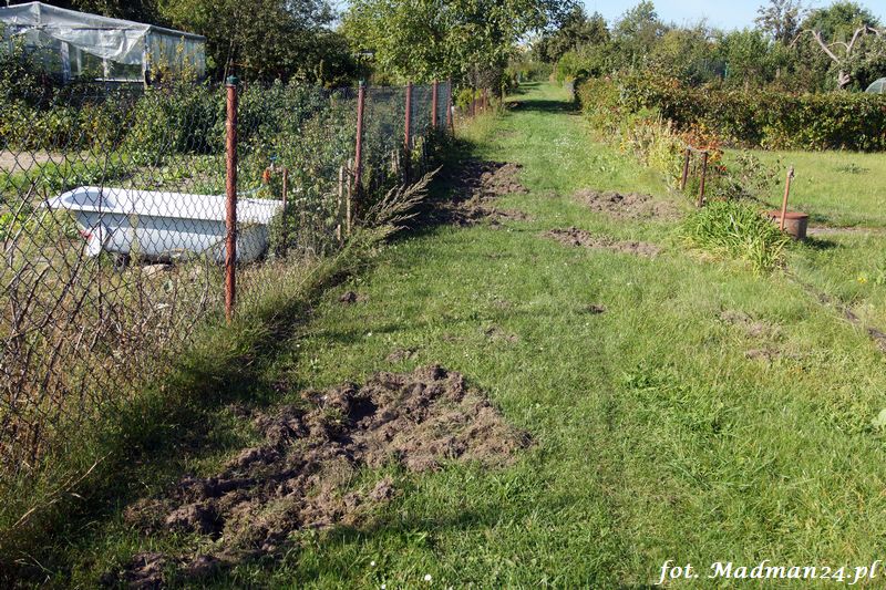 Na zaproszenie zarządu ROD Metalowiec odwiedziłem dzisiaj teren działek, żeby na własne oczy przekonać się jakie spustoszenia robią dziki. Faktycznie jest to duży problem. Ślady dzikich lokatorów są wszędzie. Części strat jakie wyrządziły już nie widać, bo właściciele działek uporządkowali teren. Oczywiście do czasu następnych odwiedzin. Część działkowców to ludzie starsi, którzy uprawiają działkę od wielu lat (są tacy co od 50) i jest to ich oczko w głowie. Najgorzej mają ci, którzy zdecydowali się na uprawę ziemniaków. Ten przysmak dzików spowodował totalne spustoszenie.