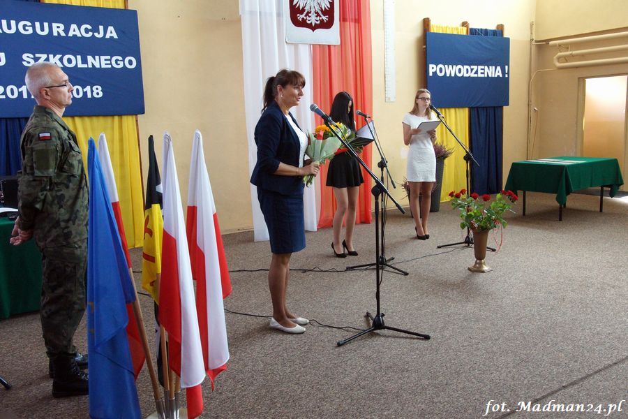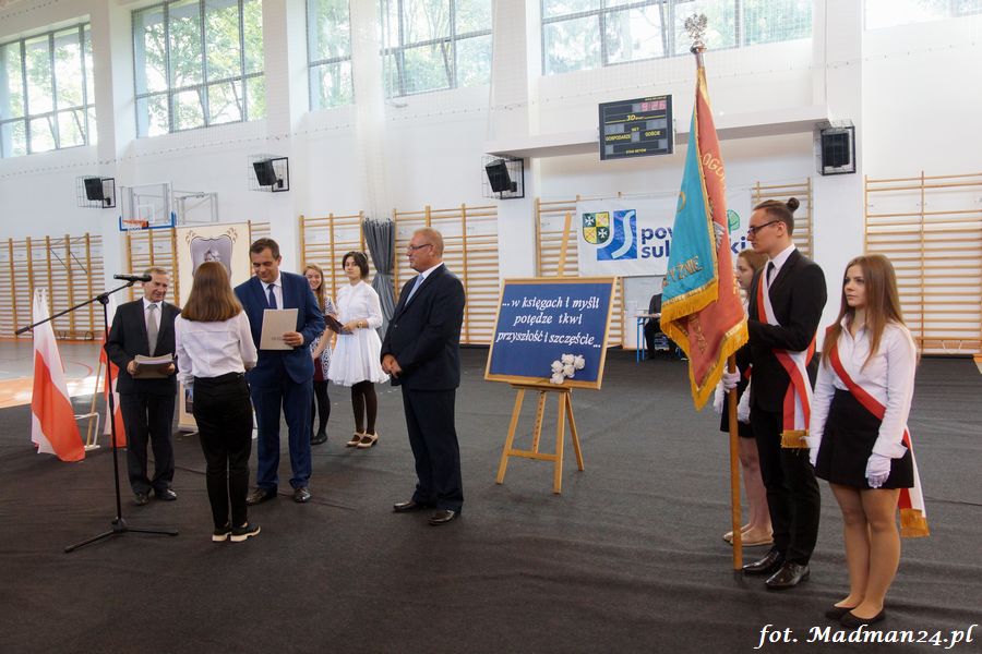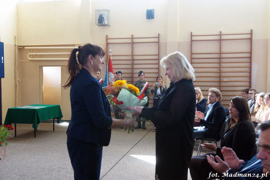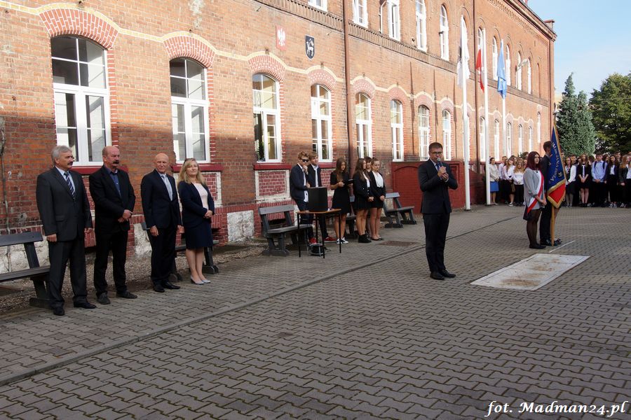Podczas uroczystego apelu, dyrektor szkoły, pani Grażyna Sobieraj gorąco przywitała przybyłych gości, grono pedagogiczne oraz uczniów i ich rodziców. Szczególnie ciepło i serdecznie zwróciła się do pierwszoklasistów, życząc , by nasza szkoła stała się dla nich miejscem bliskim sercu, takim, w którym będą czuli się dobrze i bezpiecznie. Życzyła uczniom wysokich not w nauce, dalszego poznawania i wykorzystywania swoich umiejętności do rozwijania własnych predyspozycji, talentów, pasji i zainteresowań oraz powodzenia na egzaminach maturalnych i zawodowych. Podkreśliła, że kształtowanie nowych, otwartych serc jest niezwykle ważną i odpowiedzialną misją, a nauczyciele są niezastąpionymi towarzyszami w tej wędrówce, podejmując odpowiedzialność za przyszłość młodego pokolenia.