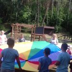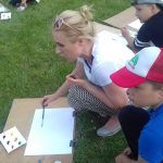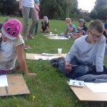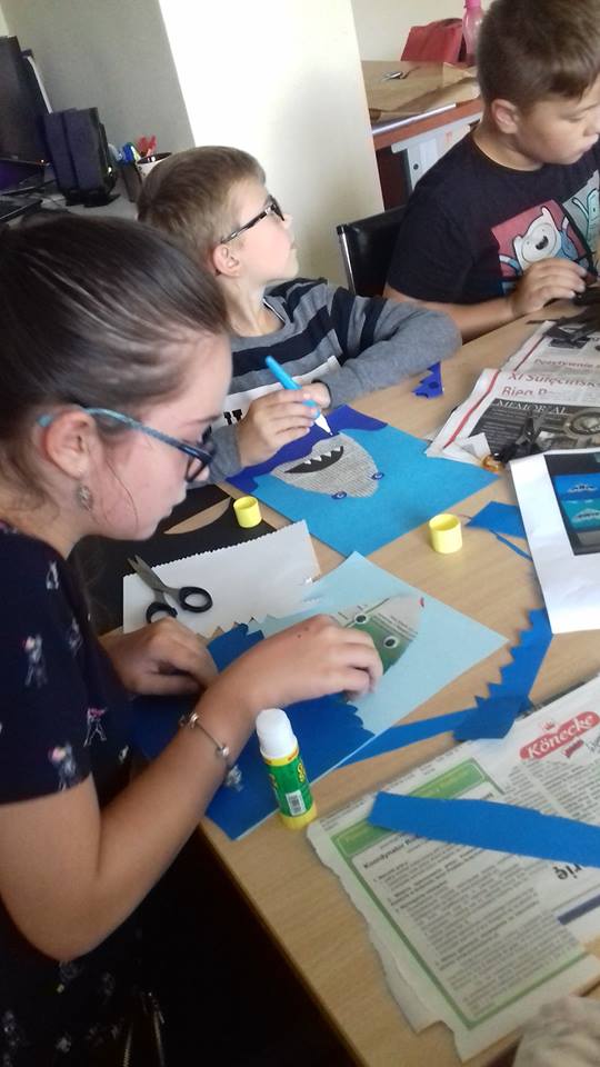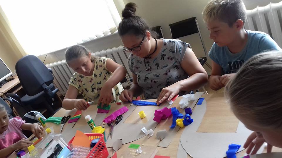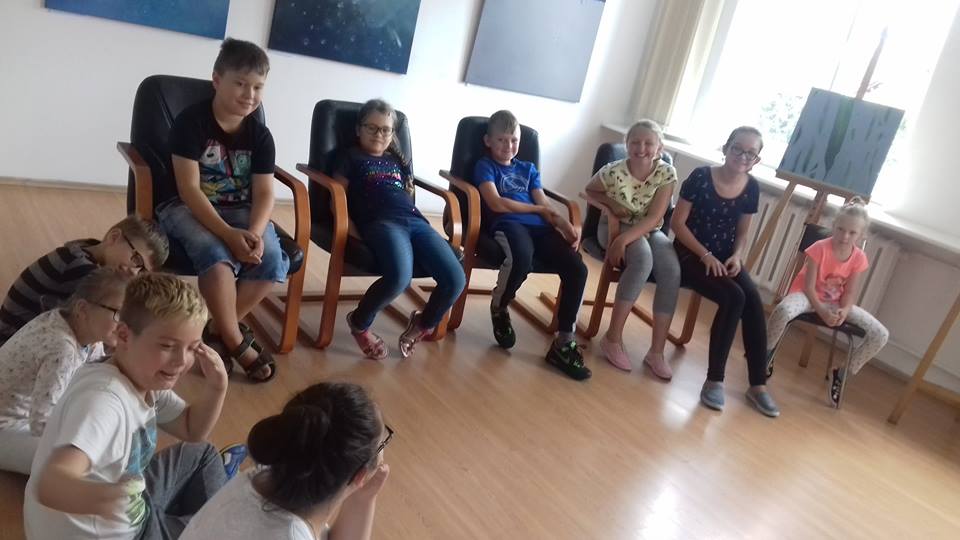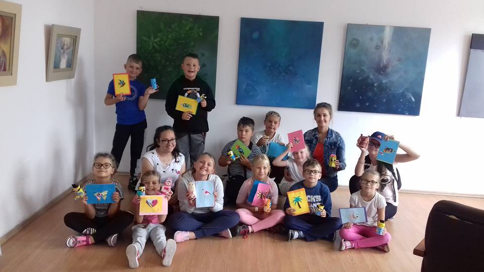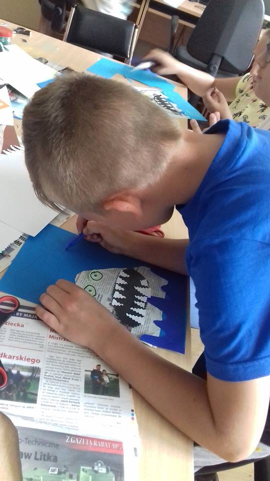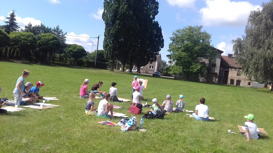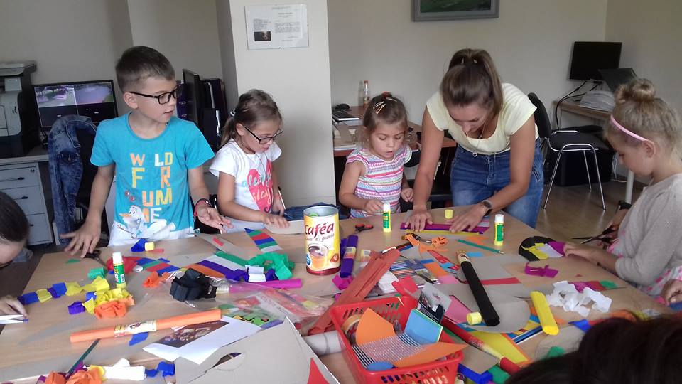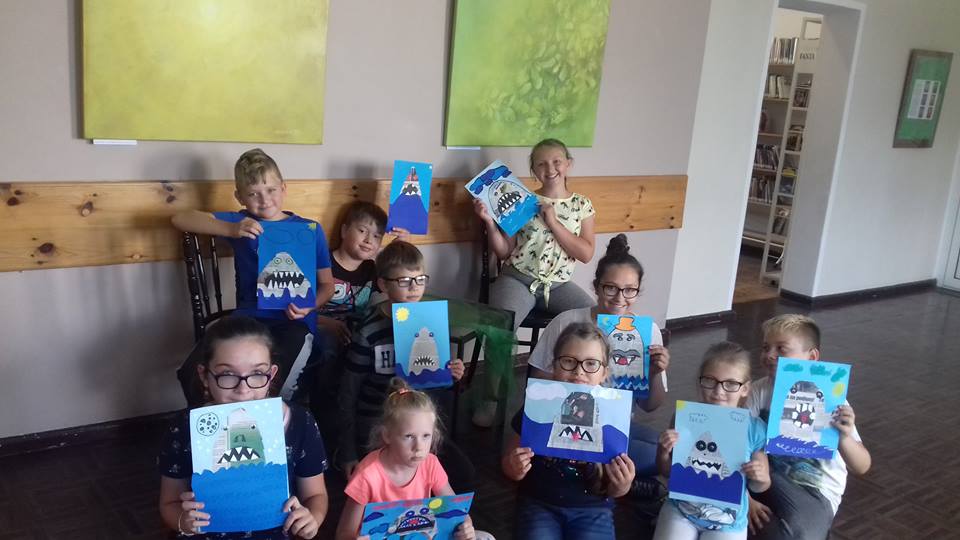 W krzeszyckiej bibliotece przedostatni tydzień był bardzo intensywny.Dzieciaki spragnione sztuki wraz z paniami, bibliotekarkami Małgosia i Sylwią, wzięły udział w ,,mini plenerze malarskim”, na którym rysowały otaczające piękno natury. W czasie gorszej aury wykonywały swoje dzieła w bibliotece. Powstały piękne egipskie nakrycia głowy, biżuteria, kartki okolicznościowe wykonane techniką iris folding oraz ,,Minionki” z recyklingu, a także inne pamiątki wakacyjne. Kiedy pogoda dopisywała wychodziliśmy na spacery między innymi na III Młyn. Odbywały się też zabawy ruchowe w plenerze, zabawy z chustą Klanza, które dzieci szczególnie lubią oraz zawody sportowe i biegi. W ostatnim dniu naszych zajęć, zrobiliśmy pamiątkowe zdjęcia i wszyscy wybraliśmy się na smaczne lody.