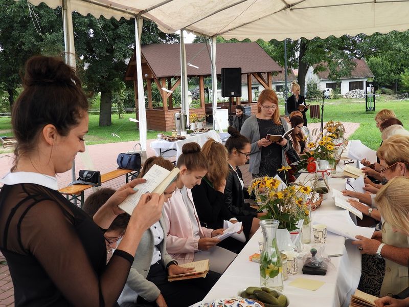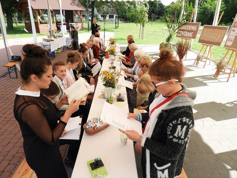 Mówiąc wesele, to na myśl przychodzi nam duży stół z poczęstunkiem oraz muzyka. Tak też było na ,,Narodowym Czytaniu 2017” drugiego września w Krzeszycach.