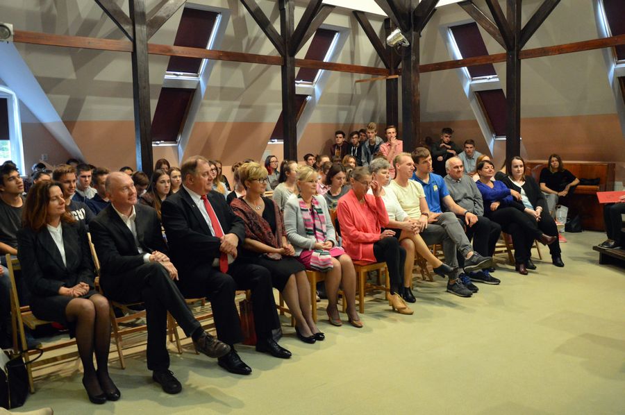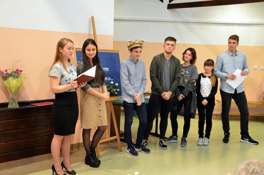 W tym dniu,  społeczność szkolna żegnała nauczycieli i pracowników odchodzących na emeryturę: panią Renatę Jankowską, panią Barbarę Pawlak i pana Leopolda Karasia. Łukasz Kobylnik, uczeń klasy III a, przygotował przepiękne słowa pożegnania z nutą refleksji i uśmiechu. Ponadto odchodzący pracownicy oprócz podziękowań otrzymali z rąk dyrekcji szkoły, gości i nauczycieli nagrody, kwiaty i upominki.