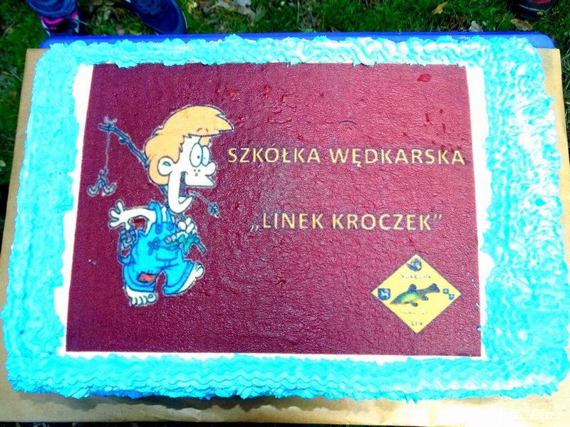 Bardzo miłą niespodziankę dla instruktorów przygotowali rodzice(opiekunowie) naszych adeptów szkółki wędkarskiej, były podziękowania oraz przepyszny tort dla całej Szkółki Wędkarskiej „Linek Kroczek”.