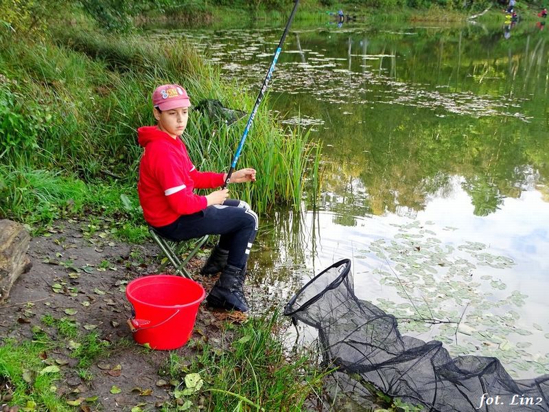 Nad brzegiem jeziora stawiło się szesnastu zawodników wraz z opiekunami, rodzicami. Młodsza grupa dzieci wędkowała 2 godz., a starsza grupa 2,5 godz. Sportowa rywalizacja odbyła się na żywej rybie, co oznacza, że po zważeniu rybki w dobrej kondycji powróciły z powrotem do jeziora. W trakcie oczekiwania na końcowe wyniki dzieci i opiekunowie zaproszeni zostali do wspólnego pieczenia kiełbasek.