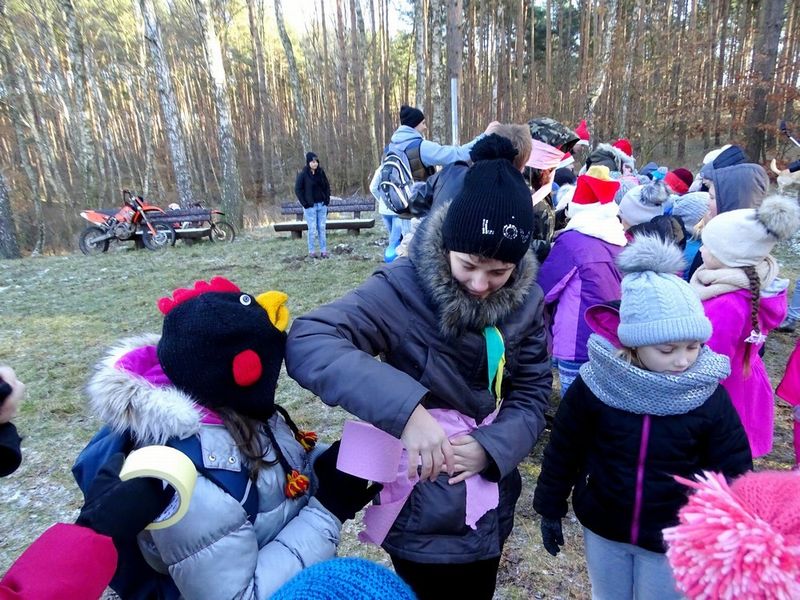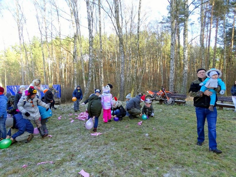Na wymarznięte w tym dniu dzieci i opiekunów czekała gorąca grochówka, zupa pomidorowa, kiełbaski pieczone na ognisku, a na deser czekały różnorodne słodycze, pączki, ciasta, owoce oraz gorąca herbata i kawa. Na zakończenie uczestnicy wzięli udział w loterii fantowej.