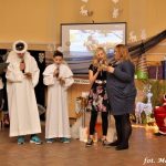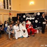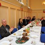 Po części artystycznej podzielono się opłatkiem i przybyli zasiedli do tradycyjnej wieczerzy wigilijnej.