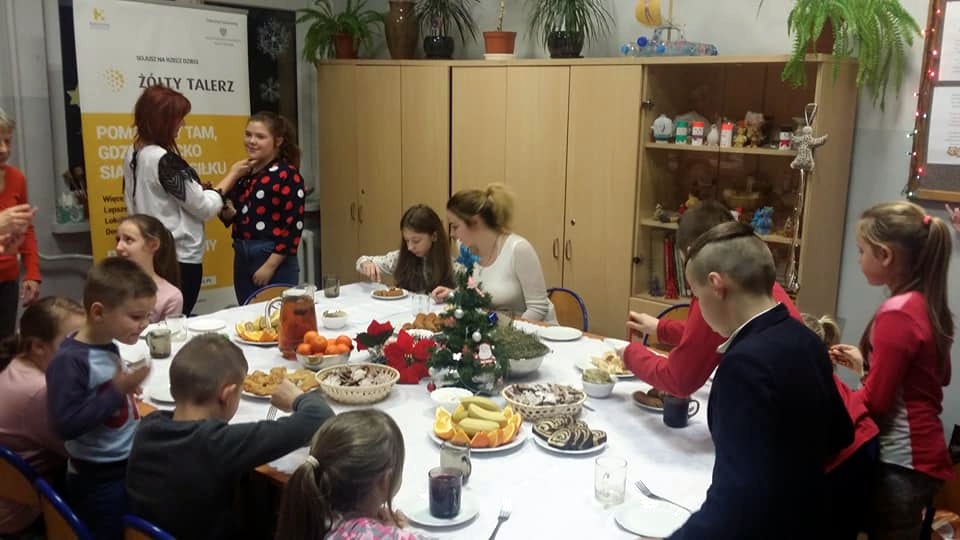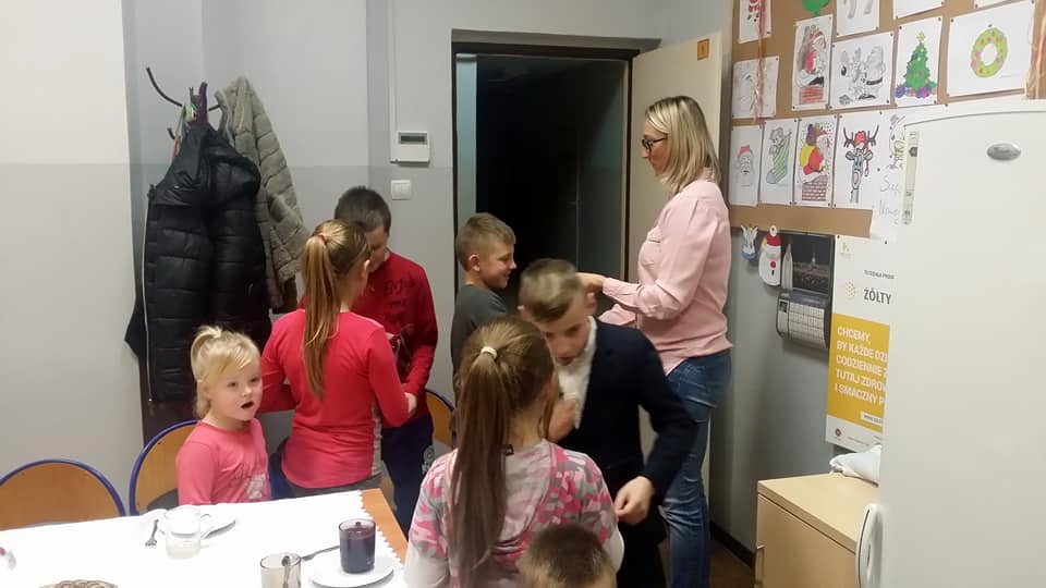 Dnia 21.12.2017 roku w Świetlicy Środowiskowej w Żubrowie odbyła się Wigilia Bożego Narodzenia. Wspólne z dziećmi przygotowane zostały postne potrawy. Na świątecznym stole królowały uszka z barszczem. Po wspólnej modlitwie oraz złożeniu sobie nawzajem życzeń i łamaniu się opłatkiem wszyscy zasiedli do obficie przygotowanej wieczerzy. Po kolacji Świetlicę odwiedził niespodziewany gość. Oczywiście to był Święty Mikołaj. Uczestnicy świetlicy z nieukrywaną radością przywitali św. Mikołaja. Zadaniem wszystkich dzieci było zaprezentowanie się przed św. Mikołajem, czyli zaśpiewanie lub zadeklamowanie wierszyka. Dzięki Fundacji Dominiki Kulczyk dzieci zostały obdarowane świątecznymi paczkami. Kolędowanie przebiegało w radosnym nastroju, a czas minął w świątecznej atmosferze. Wszyscy spędzili razem niezapomniane chwile pełne ciepła, życzliwości i radości. Tym, którzy nie mogli przybyć na Wieczerzę, dostarczono paczki z życzeniami do domu.