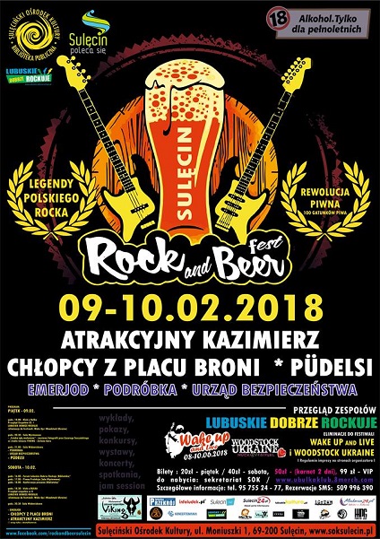 Dwa dni, dwie sceny, dwa lokale handlowe, Piwna Rewolucja z ponad setką gatunków piw, sympozja, konferencje, pokazy, prelekcje, wystawy i konkurs muzyczny. Wszystko to w murach Sulęcińskiego Ośrodka Kultury, który na te dwa dni zamienia się w potężny obiekt festiwalowy, gotów pomieścić w sumie bez mała tysięczną rzeszę fanów najlepszego polskiego rock’n’rolla oraz specjalnie wyselekcjonowanych piw „kraftowych” z całego kraju i nie tylko.