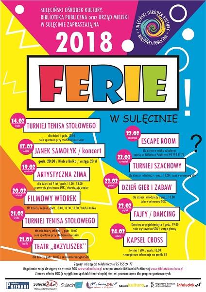 Regulamin ferii zimowych znajduje się poniżej, a także na stronach: www.soksulecin.pl / www.bibliotekasulecin.pl.