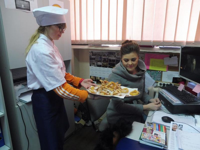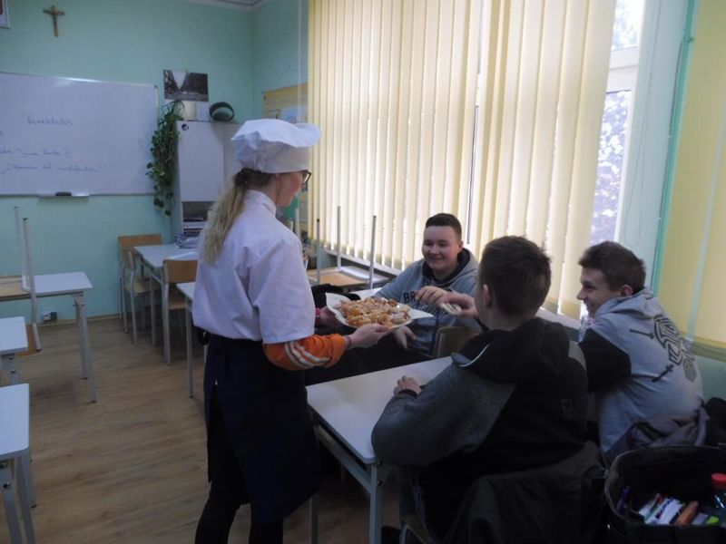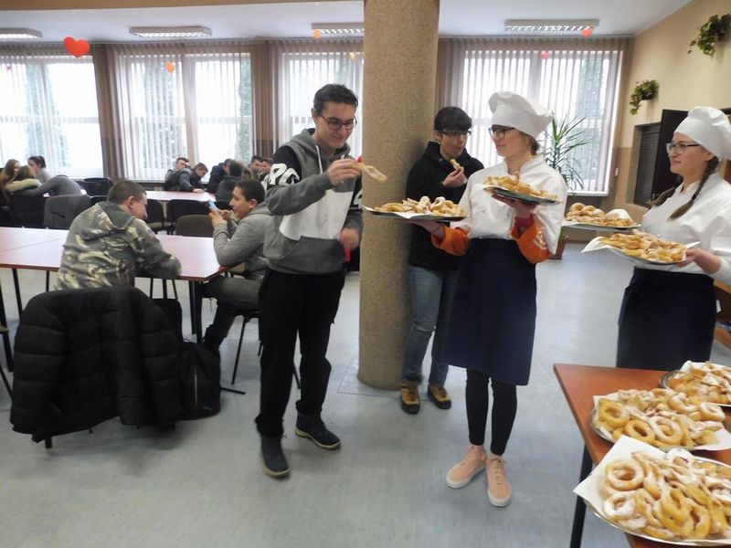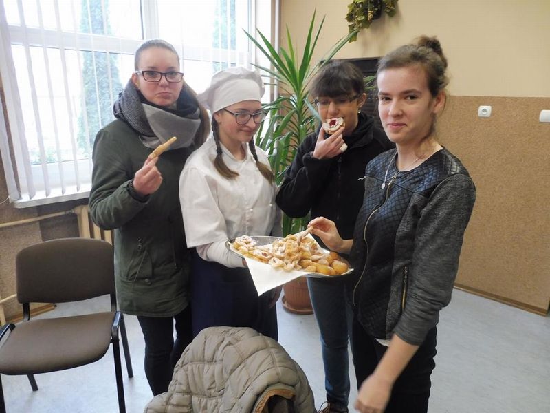 Dnia 09.02.2018r. w Zespole Szkół Licealnych i Zawodowych im. Unii Europejskiej w Sulęcinie świętowaliśmy tłusty czwartek, znany także jako zapusty. Społeczność szkolna mogła skosztować przepysznych wypieków związanych z tradycją tego święta: słodkich faworków, pączków, oponek i róż karnawałowych przygotowanych na zajęciach przez uczniów klas gastronomicznych.