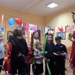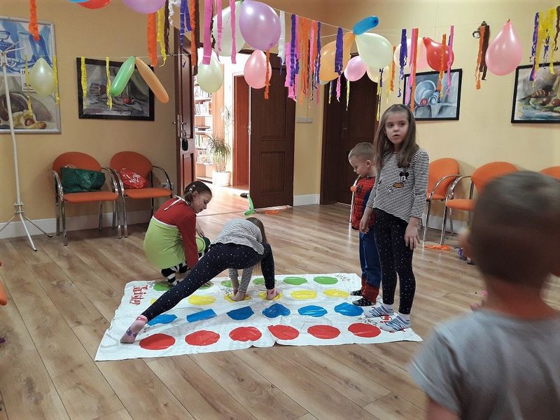 Zakończeniem ferii była zabawa taneczna, na której to dzieci bawiły się szaleńczo i radośnie. Poprzebierane i mamy i dzieci. Było dużo gier i zabaw, m.in. kalambury i twister. Mnóstwo radości i uśmiechów. Dzieci pałaszowały słodycze i popijali napoje. Wszyscy, którzy uczestniczyli w feriach w bibliotece otrzymali upominki.