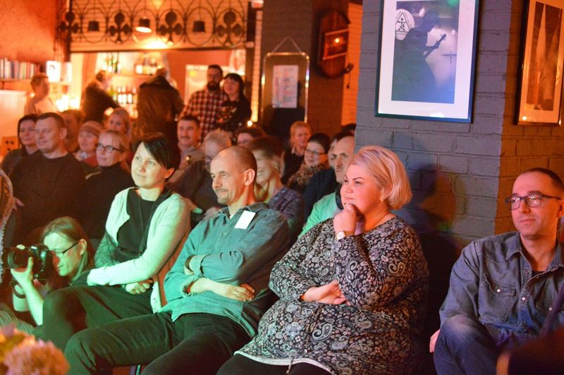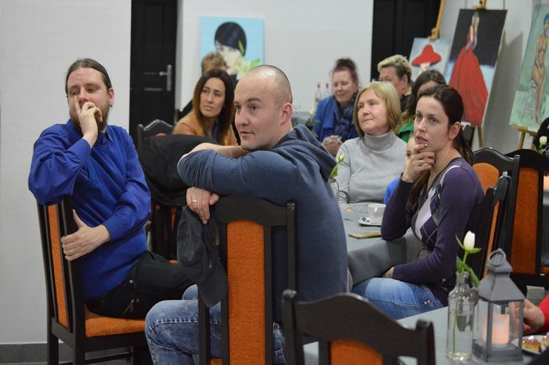 Tuż po wernisażu spotkaliśmy się w klimatycznej piwnicy Klubu u Bulka na koncercie Janusza Radka. Było nastrojowo – wokalista wprowadził widownię w wyjątkowy nastrój.