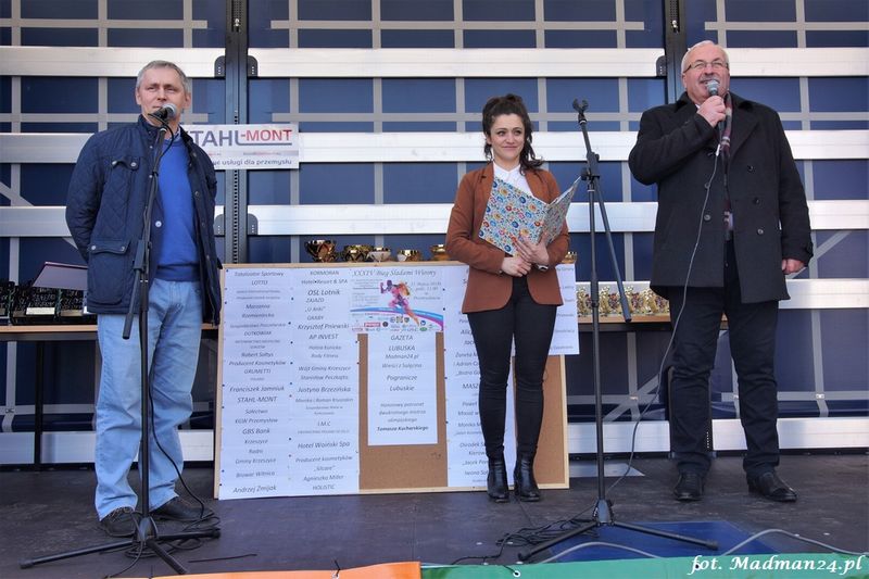 Dyrektor Gminnego Ośrodka Kultury w Krzeszycach, czyli Lucyna Poznańska, tym razem nie biegała, bo zajęła się organizacją. Tak prawdę mówiąc, to stwierdzenie „nie biegała” jest nadużyciem. Wprawdzie nie wzięła udziału w biegu, ale za to była wszędzie. Trasę 10 kilometrów przebyła na pewno. Od dawna zresztą wiadomo, że Bieg Śladami Wiosny to jej oczko w głowie.