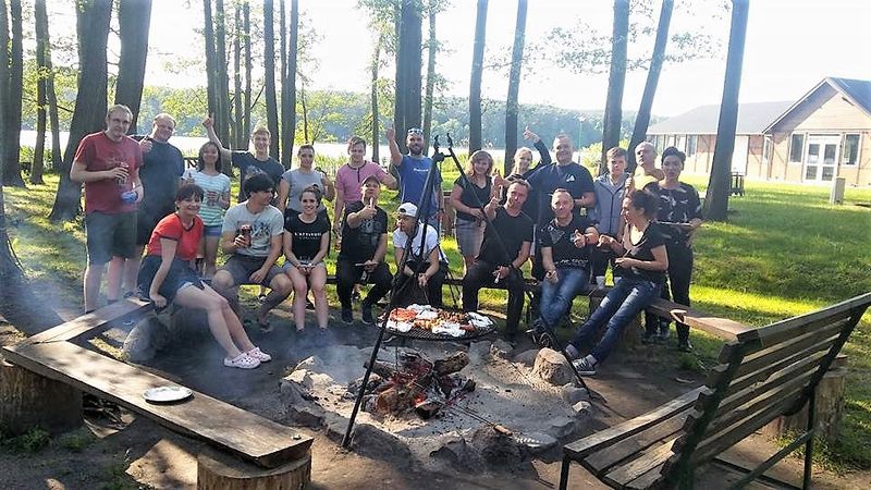 Po turnieju wszyscy pojechaliśmy na Ośrodek Wypoczynkowy Laguna, gdzie odbył się grill -ognisko. Panowała świetna atmosfera, było dużo śmiechu. Zagraliśmy mecz siatkówki plażowej Polska – Niemcy. Była kąpiel,a także szczupak, którego złapał Bodzio. Ryba oczywiście wróciła do wody. Dziękujemy wszystkim, było przesympatycznie. Do zobaczenia na kolejnych turniejach .