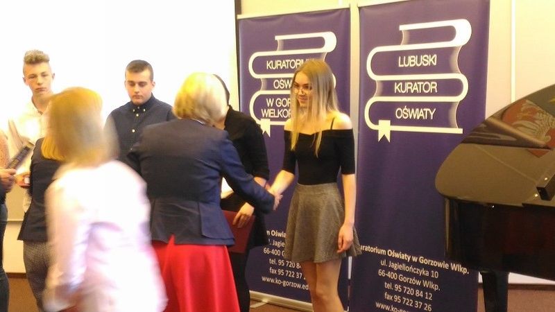 Wojewódzkiej i Miejskiej Bibliotece Publicznej w Gorzowie Wielkopolskim, podczas uroczystego podsumowania konkursów przedmiotowych gimnazjów, pani Ewa Rawa Lubuski Kurator Oświaty wręczyła laureatom zaświadczenia i nagrody, a ich nauczycielom podziękowania.